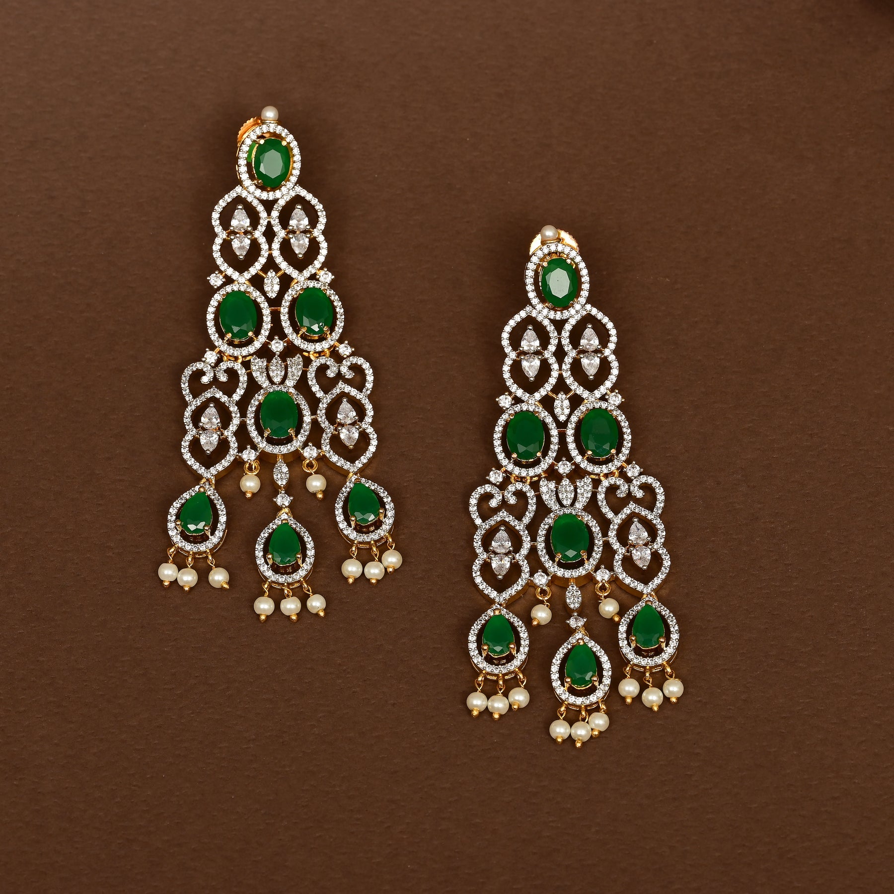 Expertly crafted with real CZ stones, this CZ Emerald Choker boasts semi-precious Emerald stones and stunningly hand-crafted diamond-like accents. Its one-of-a-kind exclusive design is elevated by elegant pearls that dangle beautifully, making it the perfect addition to any jewelry collection.