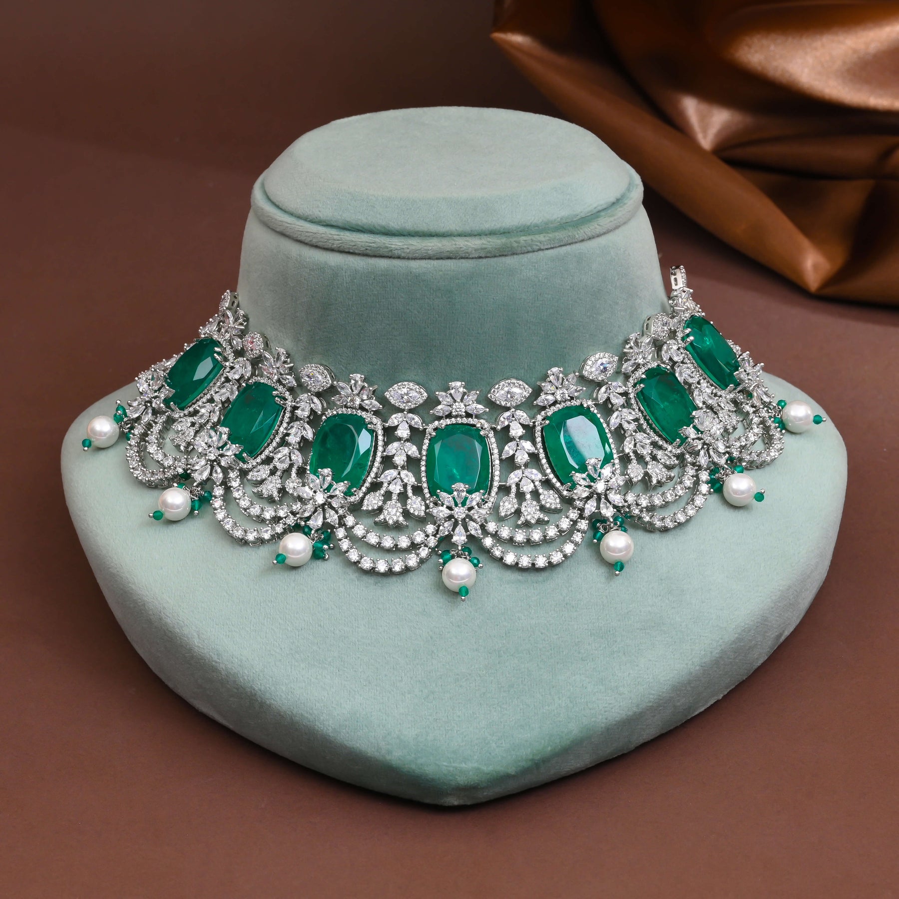 cz emerald choker set