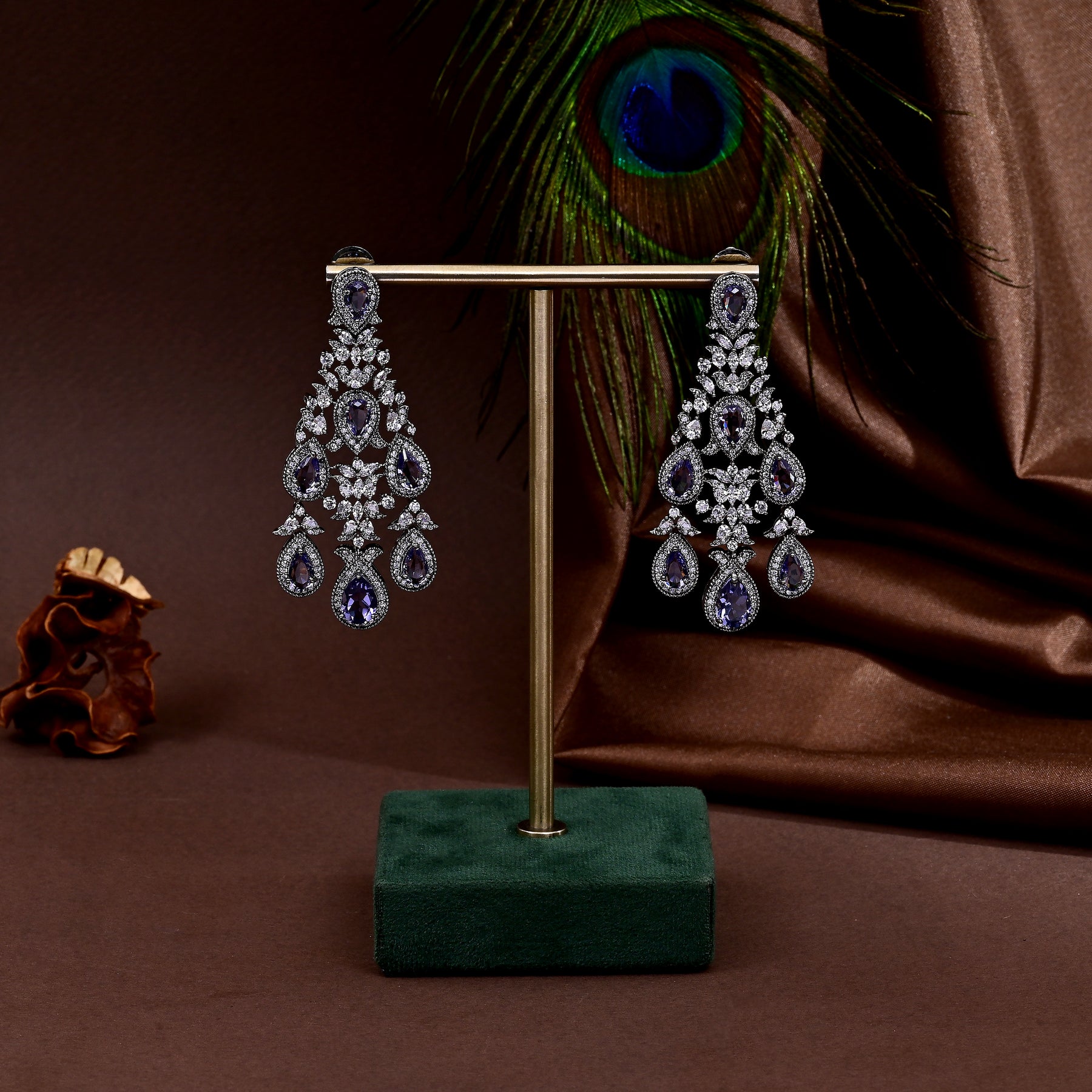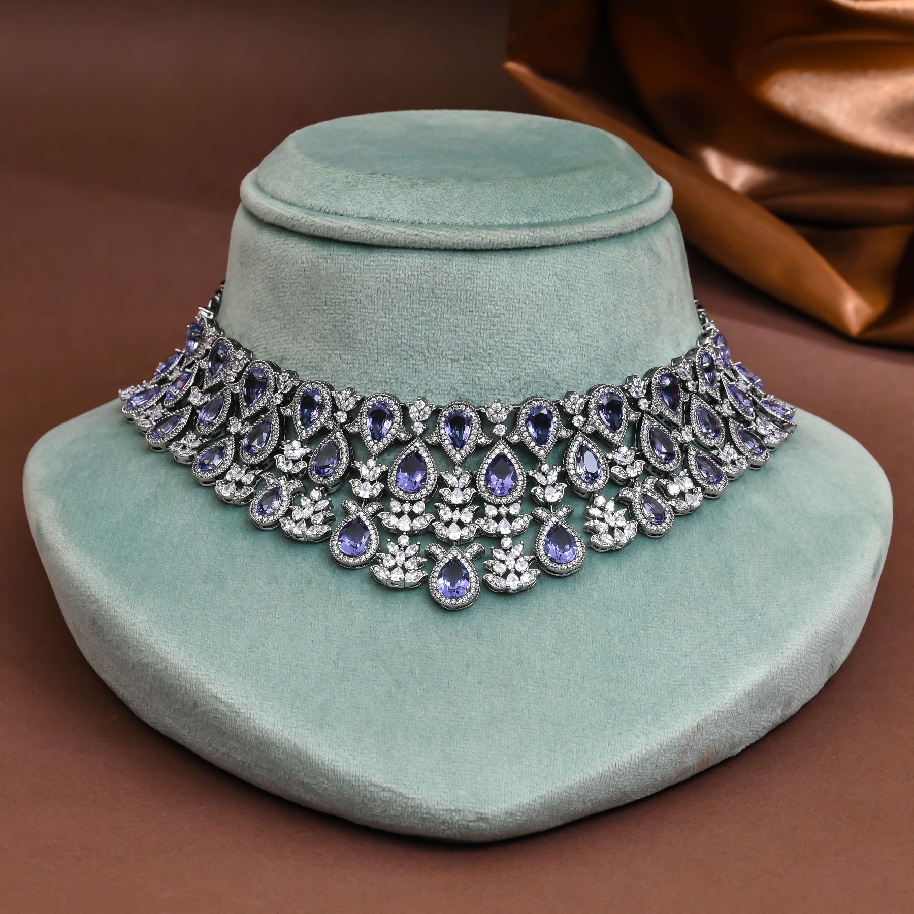 This handmade exclusive choker set features real CZ stones and semi-precious amethyst stones in a beautiful purple color, giving it a real diamond look and adding a touch of elegance to any outfit. Enjoy the luxurious design and high-quality materials, perfect for any occasion.
