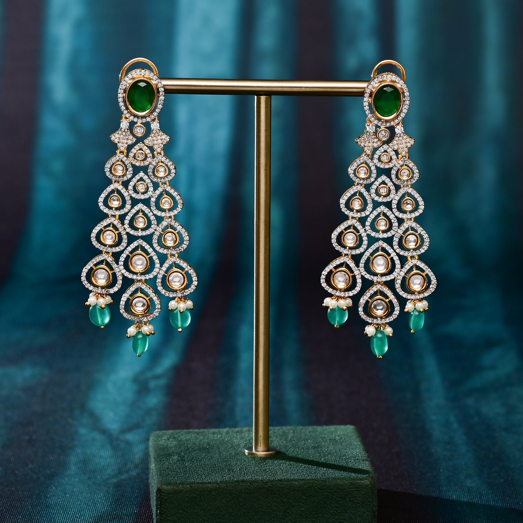 This hand-crafted CZ Polki Choker features exquisite design with real CZ stones and semi-precious polki diamonds. Elevate your style with the timeless elegance of this one-of-a-kind piece.