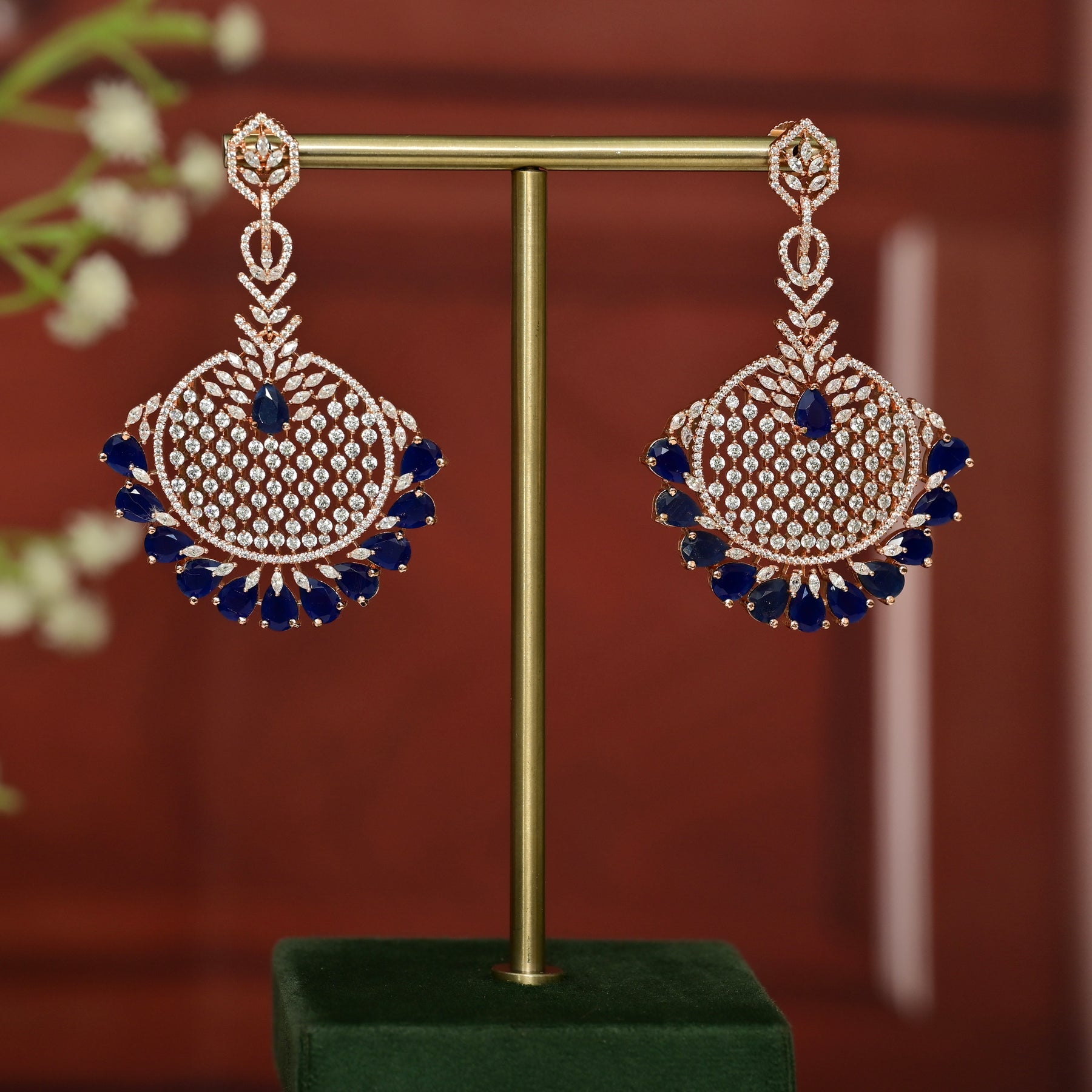 These CZ Blue Sapphire Earrings feature real CZ stones and semi-precious blue sapphire stones, giving them a luxurious and elegant look. Handmade with exquisite craftsmanship, these earrings provide a stunning and exclusive diamond-like appearance. Elevate any outfit with these sparkling and unique earrings.