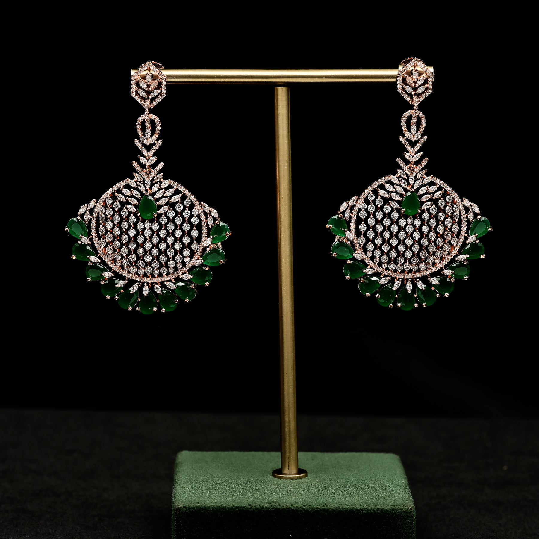 These CZ Designer Earrings feature real CZ stones and semi-precious emerald stones, giving them a handmade, real diamond look. Elevate your style with these exclusive earrings that are sure to catch everyone's eye.