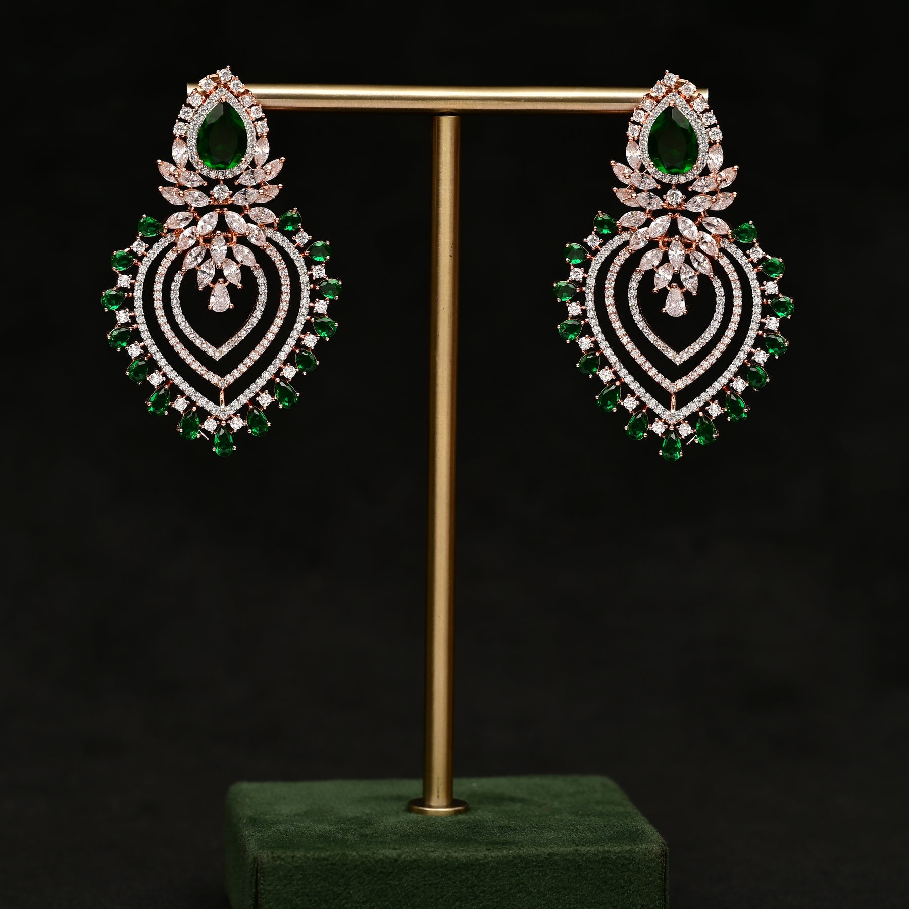 Crafted with expert precision, these CZ Emerald Earrings feature dazzling real CZ stones and semi precious emerald stones for a luxurious and timeless style. Each earring is handmade to achieve a real diamond look, making them exclusive and perfect for any occasion. Elevate your jewelry collection with these stunning earrings.