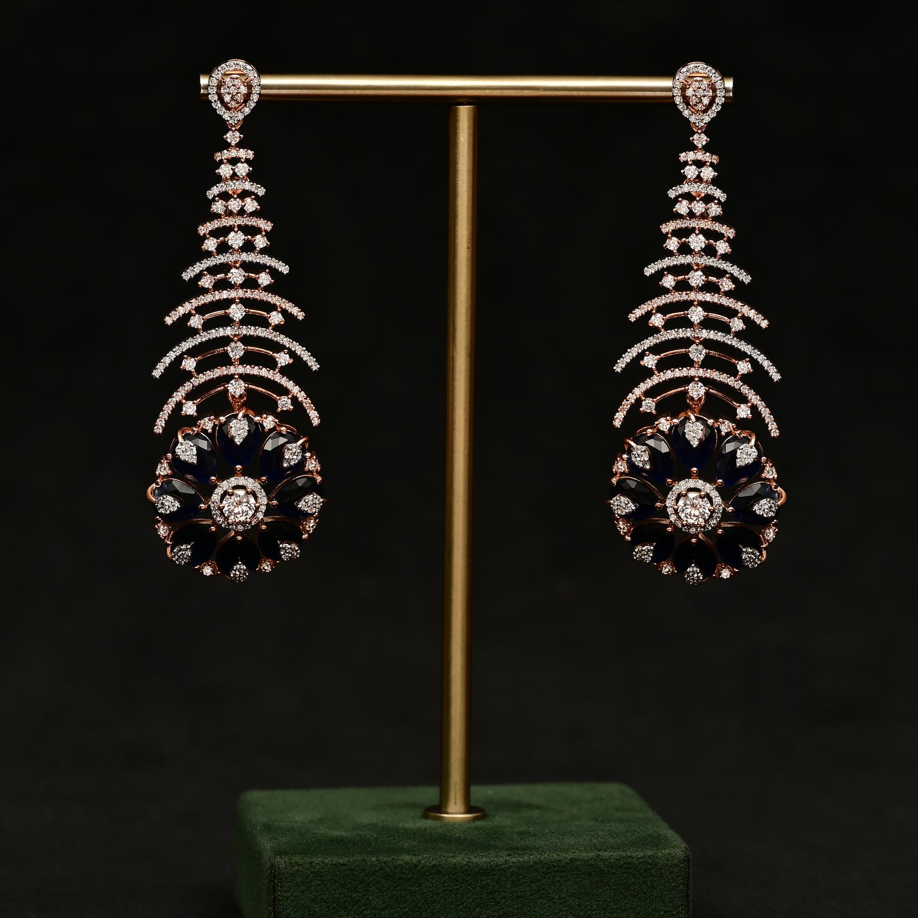 These CZ Rose Gold Earrings feature real cz stones and semi precious blue sapphire stones, giving them a stunning and sophisticated appearance. Handmade with expert precision, these earrings have an exclusive real diamond look that is sure to elevate any outfit. The perfect accessory for those looking for a touch of elegance.