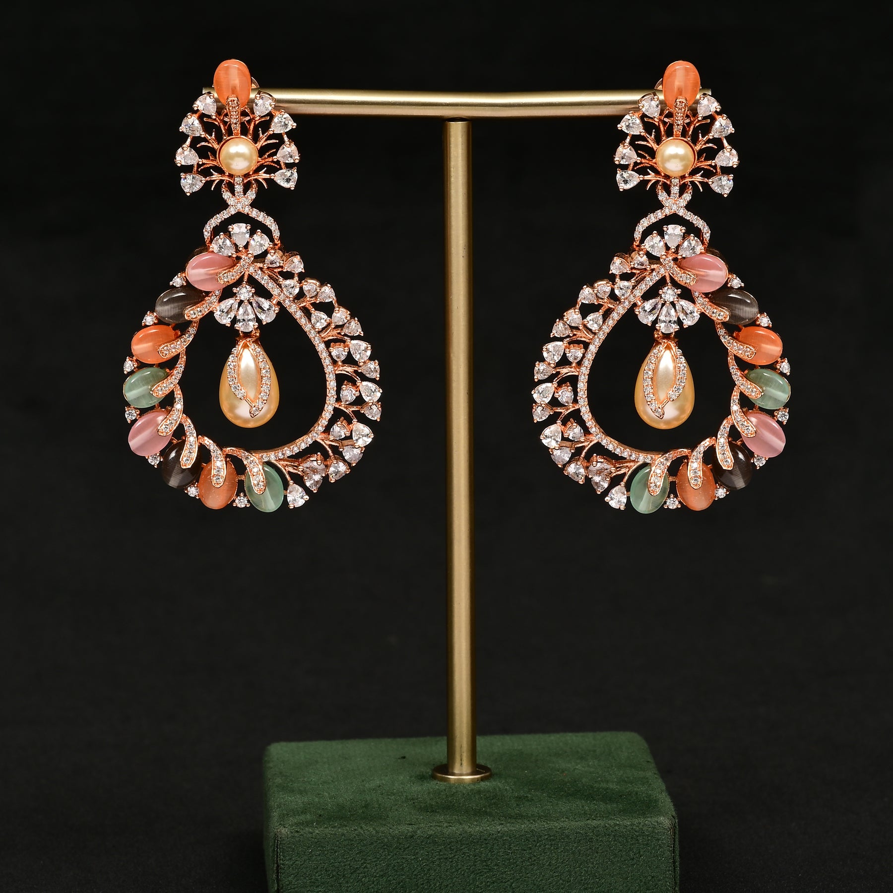 These handmade CZ Rose Gold Earrings feature semi-precious multicolor stones that give off a real diamond look. The exclusive rose gold finish adds a touch of luxury. Perfect for any occasion, these earrings are a must-have for any jewelry collection.