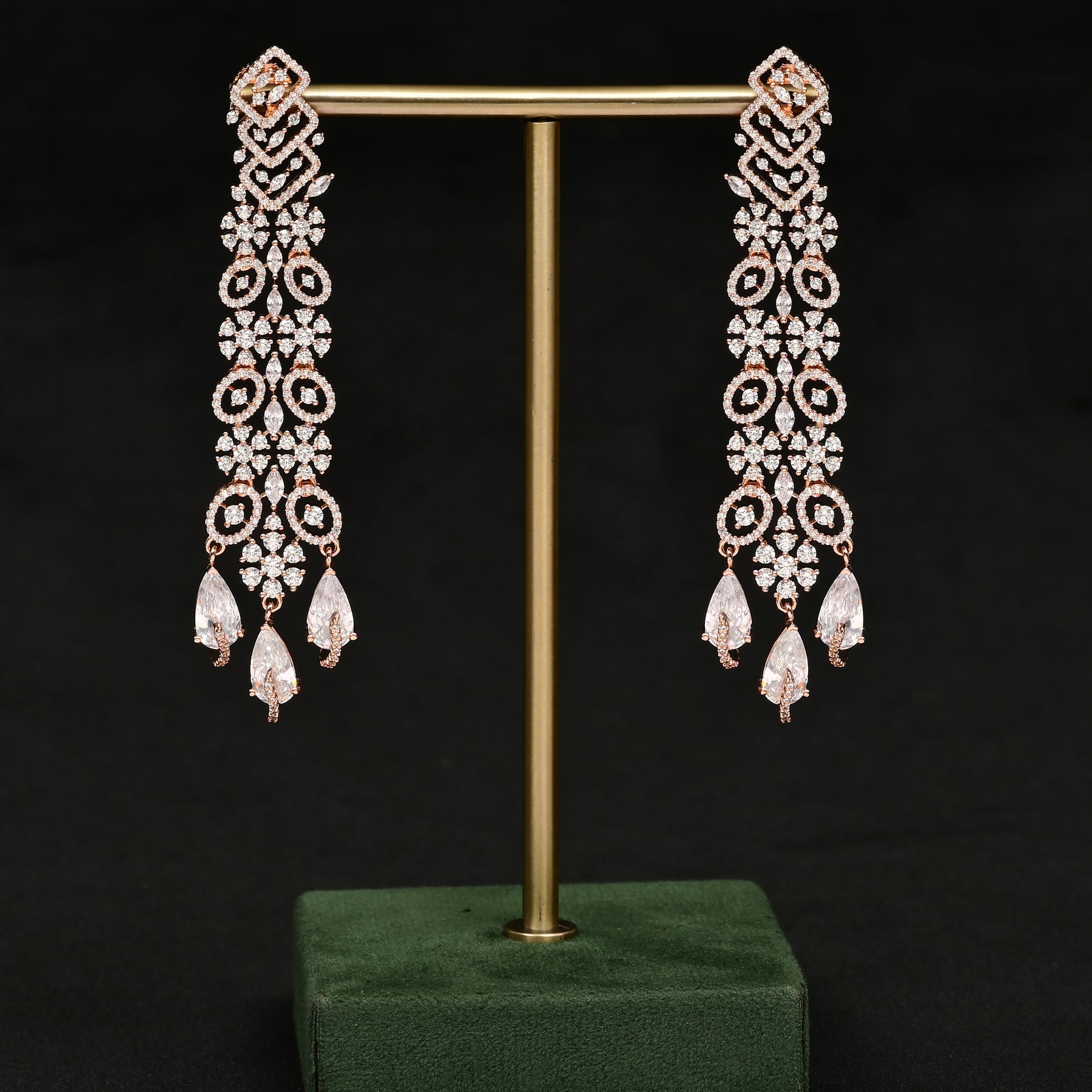 Expertly crafted with real cz stones, these handmade rose gold earrings offer a stunning, diamond-like look. The exclusive design adds a touch of elegance to any outfit. With amazing quality and attention to detail, these earrings are a must-have for any jewelry collection.