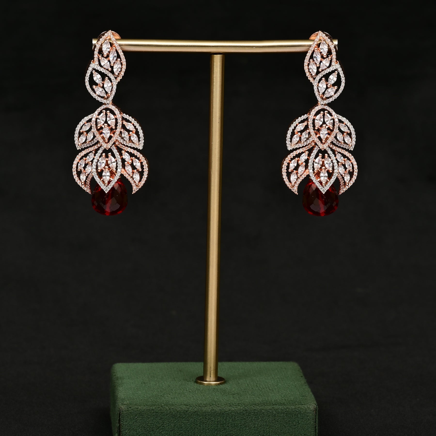 Add a touch of elegance with these handcrafted CZ Rose Gold Earrings. The real CZ stones and semi-precious ruby stones provide a luxurious and exclusive design, while the rose gold finish gives them a timeless look. Perfect for adding a touch of sophistication to any outfit.