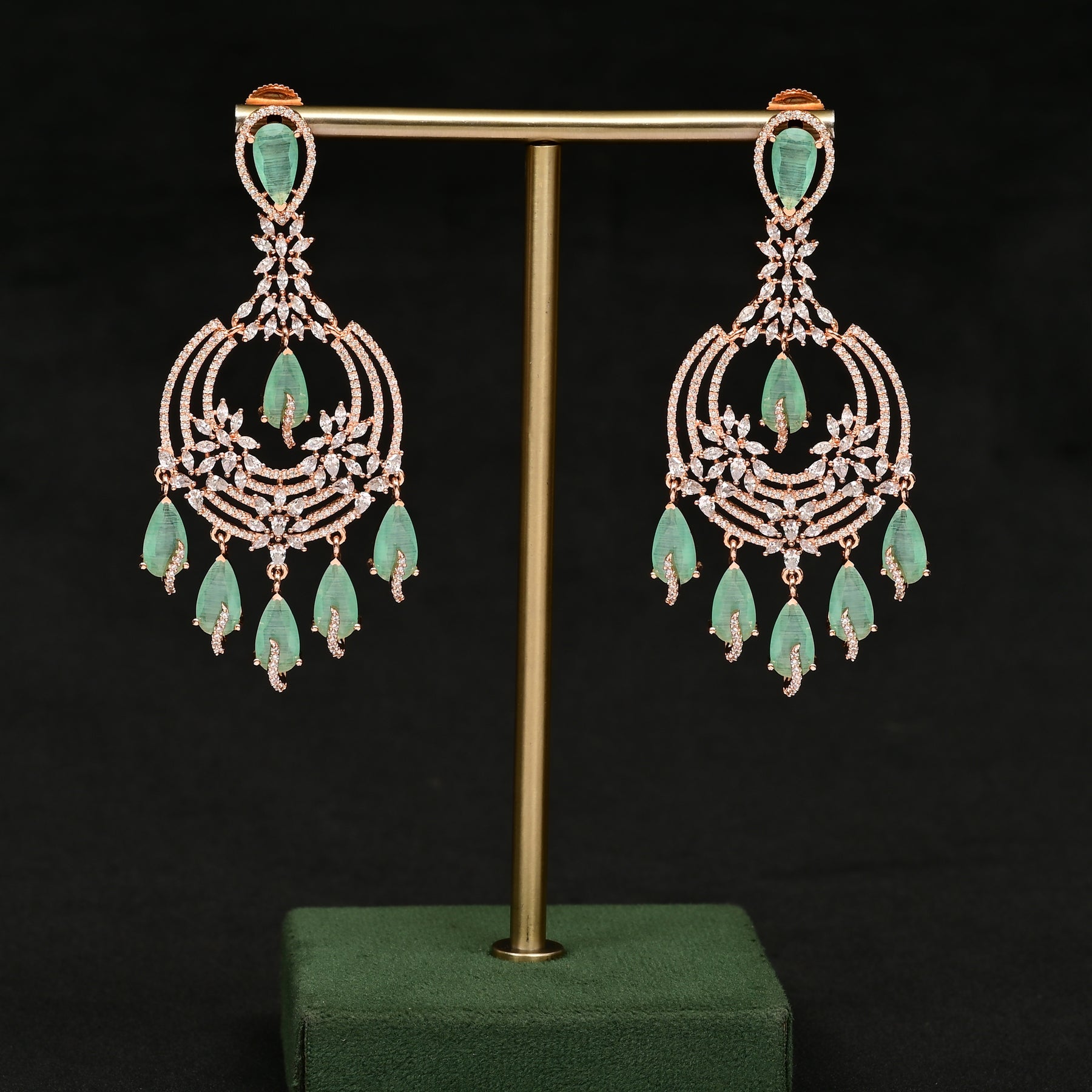 Introducing our exclusive CZ Rose Gold Earrings, featuring real CZ stones and semi-precious mint color stones for a stunning, handmade diamond look. With a delicate rose gold finish, these earrings are the perfect addition to any outfit. Elevate your style with these unique and elegant earrings.