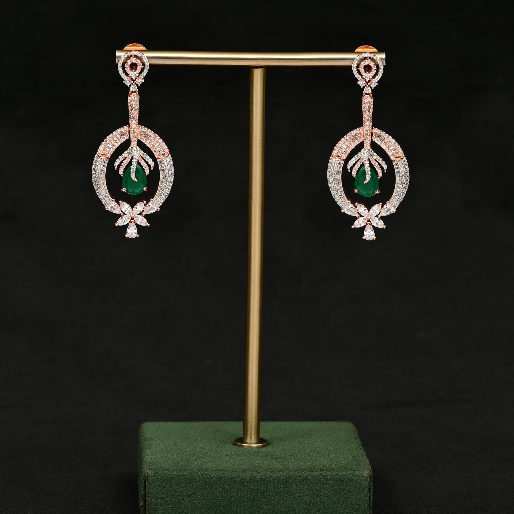 These CZ Rose Gold Earrings are made with real cz and semi-precious emerald stones, giving them a unique and luxurious appearance. The exclusive rose gold finish adds sophistication to any outfit. Handmade with precision, these earrings offer a real diamond look that will elevate your style.