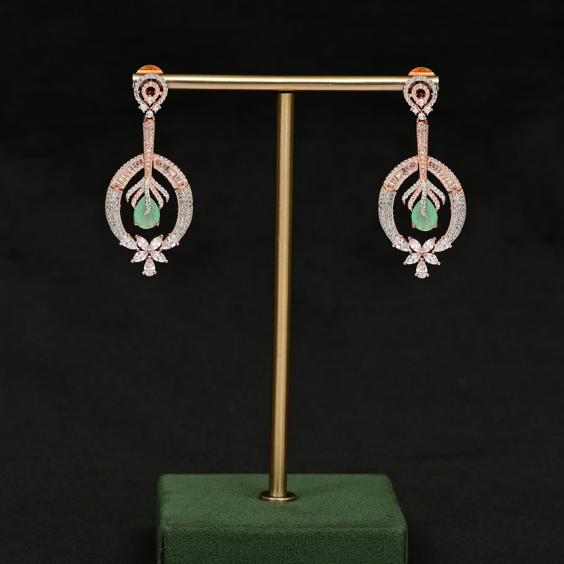 Expertly crafted for a luxurious look, these CZ Rose Gold Earrings feature real CZ stones in a mesmerizing mint color. Perfect for any occasion, their exclusive rose gold finish adds a touch of elegance to any ensemble. Experience the sparkle and shine of real diamonds with these handmade earrings.