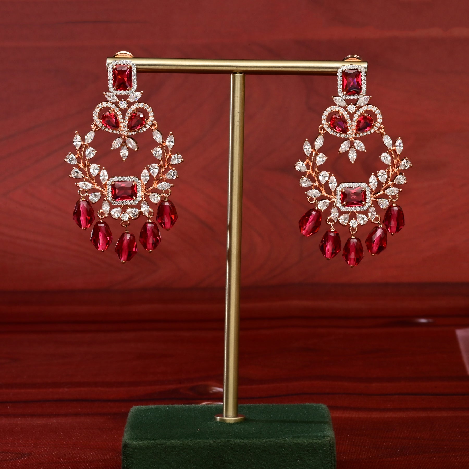 These handmade CZ Rose Gold Earrings feature real cz stones, semi precious ruby stones, and an exclusive rose gold finish. The exquisite design resembles real diamonds, offering a luxurious and sophisticated look. Perfect for special occasions, these earrings are a must-have for any jewelry collection.