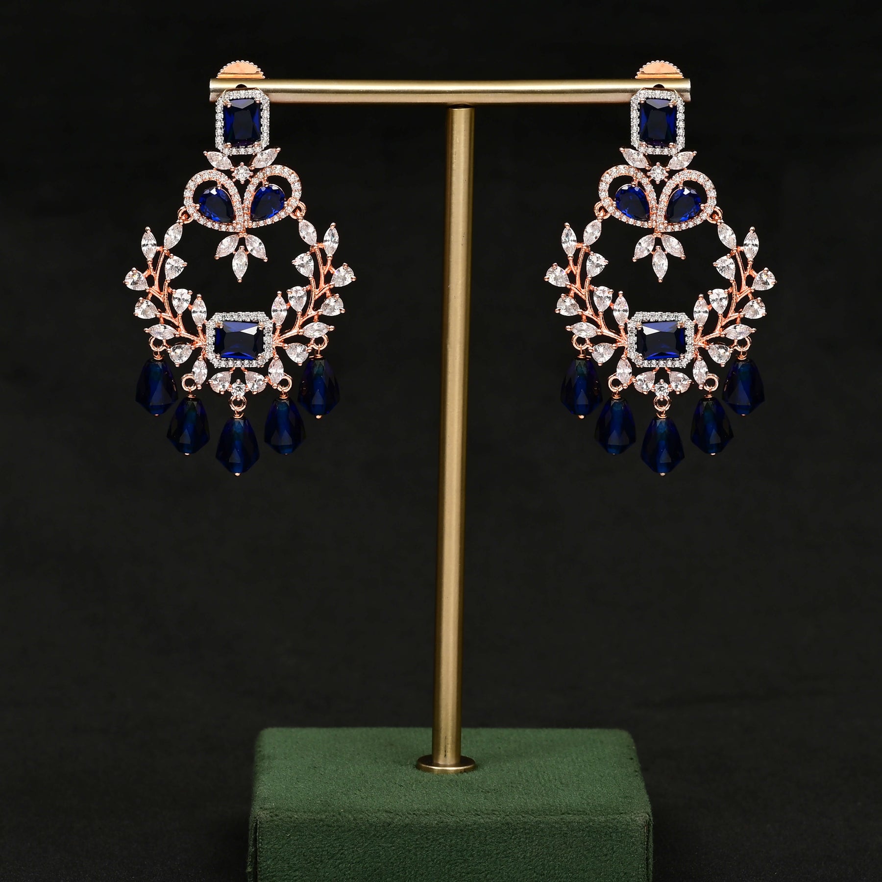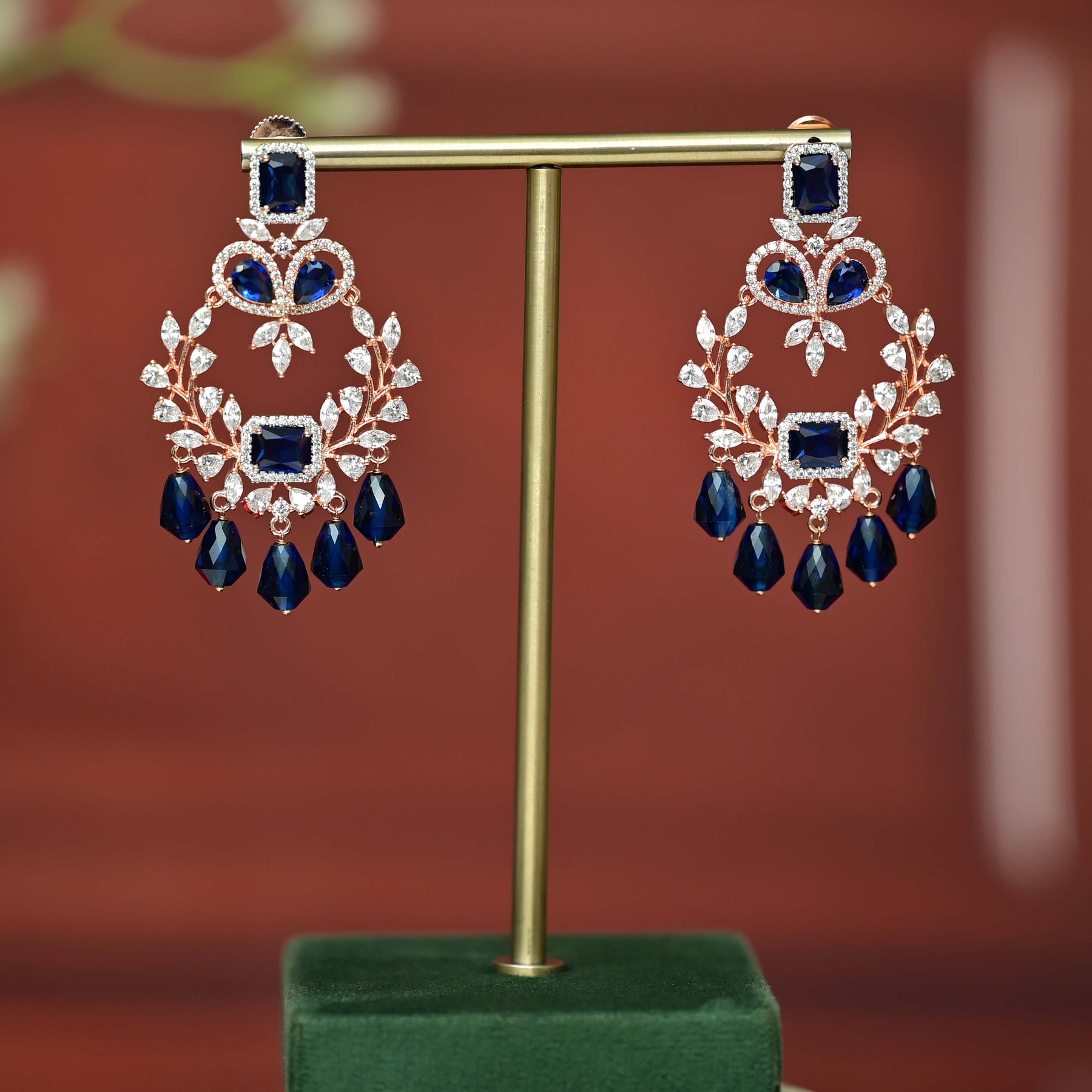 These CZ Rose Gold Earrings feature expertly handcrafted designs that mimic the brilliance of diamonds. Set in a warm rose gold finish, they showcase genuine cubic zirconia stones alongside semi-precious sapphire accents, offering a sophisticated sparkle and rich color contrast. Perfect for elevating any ensemble, these earrings combine quality craftsmanship with elegant style.