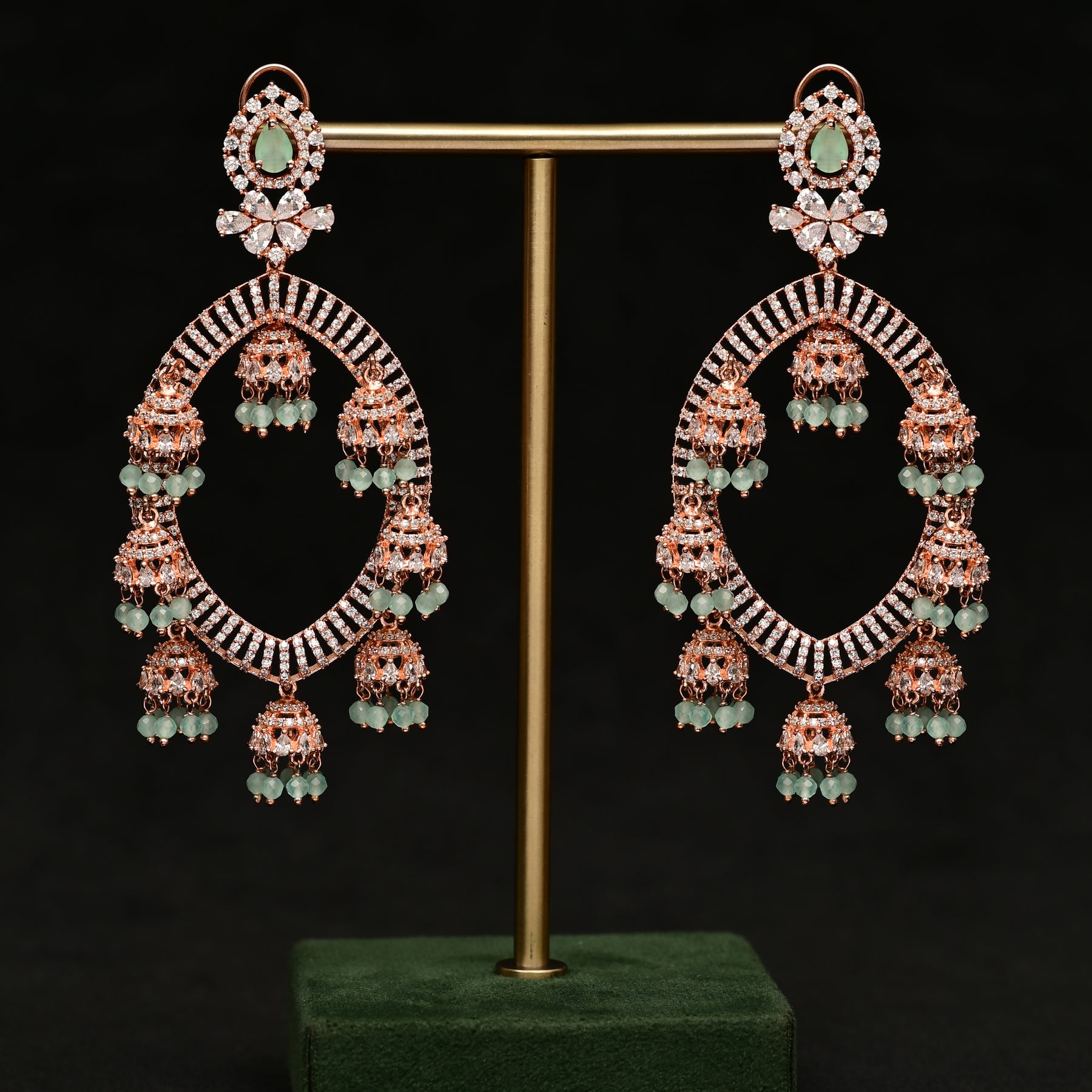 Upgrade your accessory game with our CZ Rose Gold Earrings. Crafted with real CZ stones and semi-precious mint color stones, these exclusive handmade earrings have a stunning diamond look. Elevate any outfit with the elegance and sophistication of rose gold.