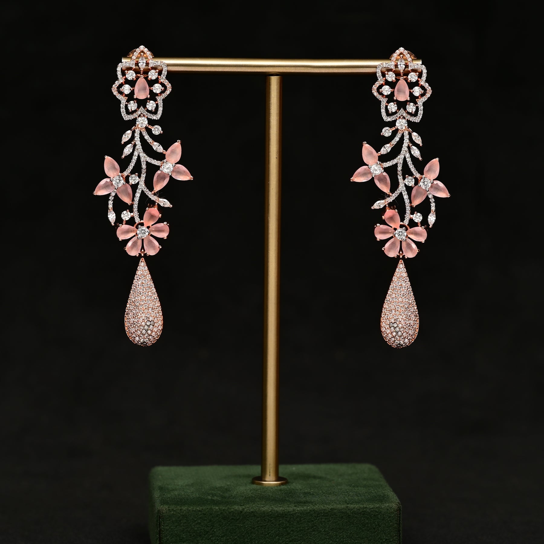 Add a touch of elegance with these handmade CZ Rose Gold Earrings. Featuring real CZ and semi-precious pink stones, these earrings have a unique rose gold finish that gives them a real diamond look. These exclusive earrings are a must-have for any jewelry collection.