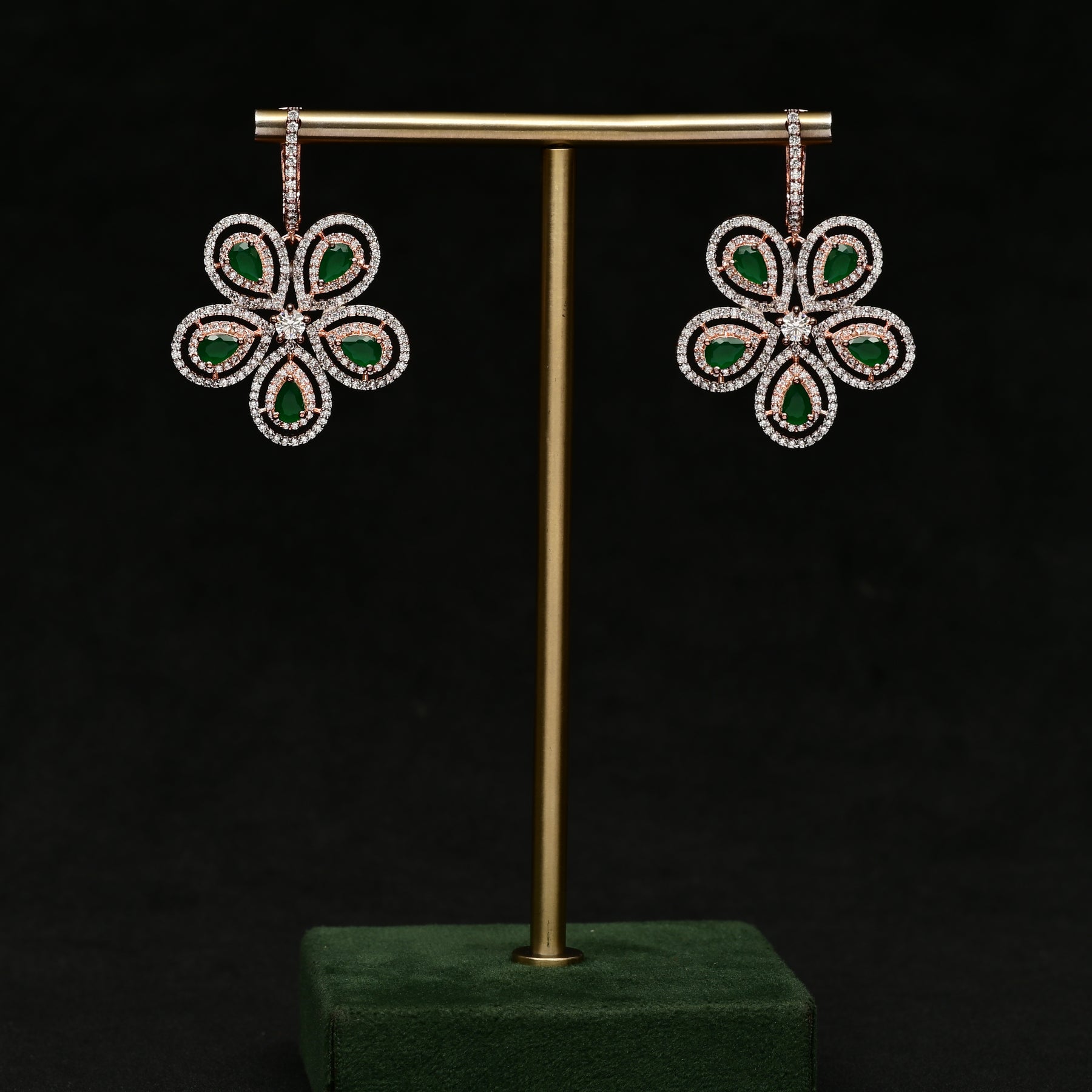 These exquisite handmade earrings feature real cz and semi precious emerald stones, finished in exclusive rose gold for a truly luxurious look. Expertly crafted, they provide the elegance and sparkle of real diamonds without the high cost. Elevate any outfit and make a statement with these stunning earrings.