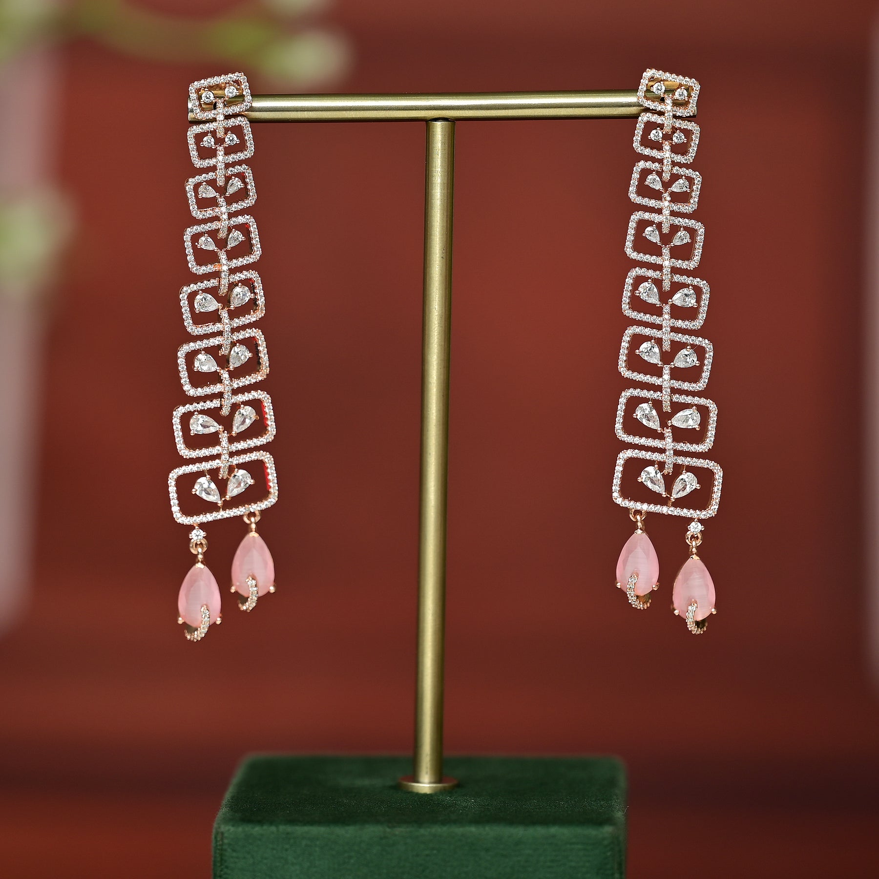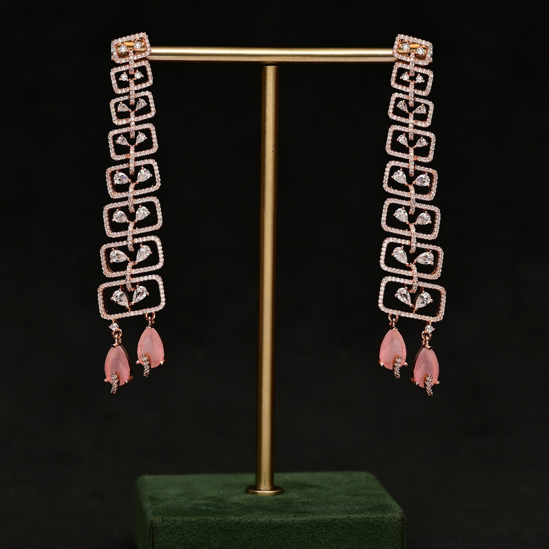 Elevate your jewelry collection with our handmade, exclusive CZ Rose Gold Earrings. These stunning earrings feature real cz and semi-precious pink stones, delivering the look of diamonds without the high cost. The rose gold finish adds a touch of elegance to any outfit.