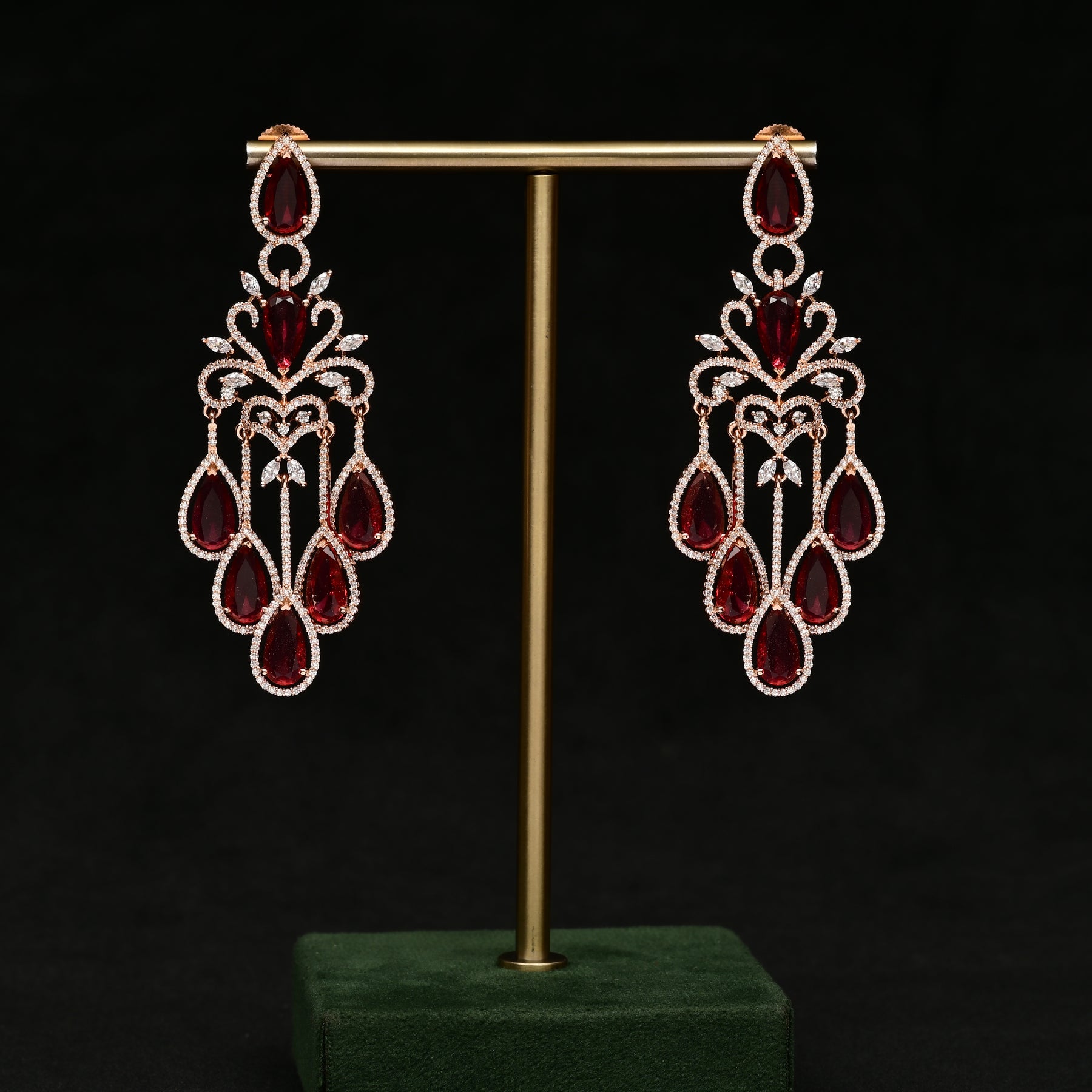 As a product and industry expert, these CZ Rose Gold Earrings offer a sophisticated and luxurious look. The handmade design features real CZ and semi-precious ruby stones, creating a unique and exclusive earring. The rose gold finish adds to the elegance, giving the earrings a real diamond-like appearance. Elevate any outfit with these stunning earrings.