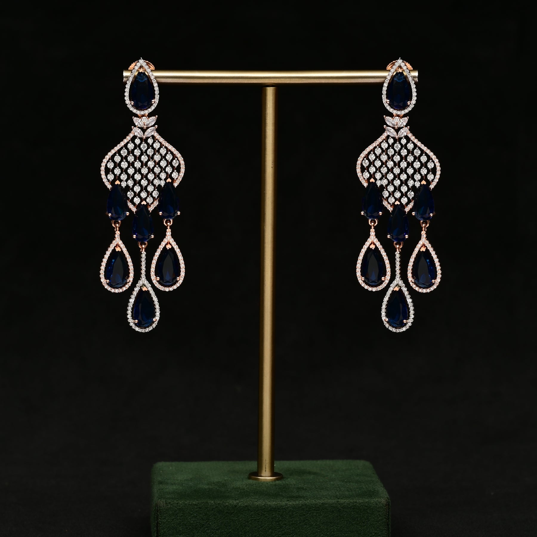 Indulge in luxury with our handmade CZ rose gold earrings. Featuring real CZ stones and semi-precious blue sapphire stones, these earrings give off an exclusive diamond look that will turn heads. Elevate any outfit with these elegant earrings.