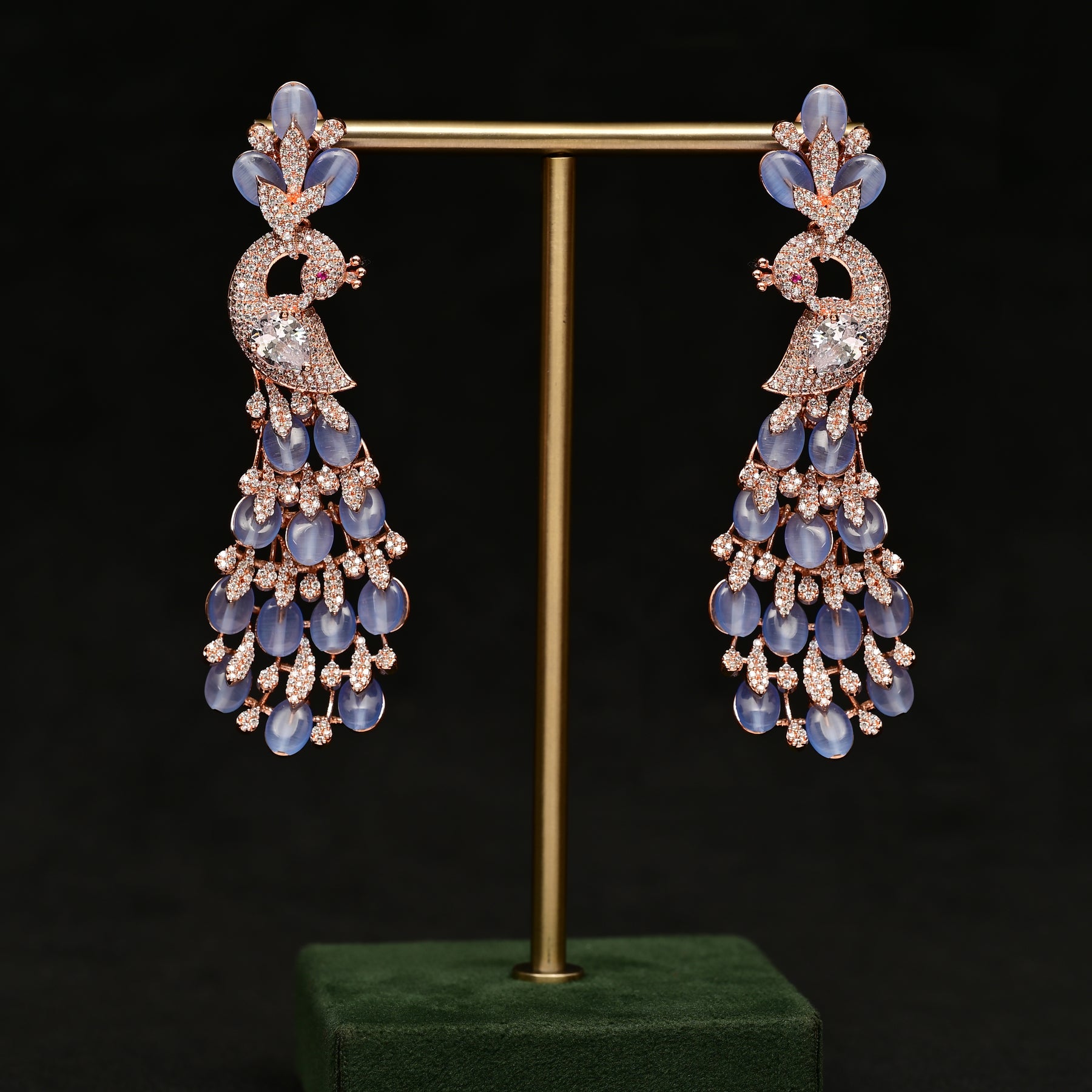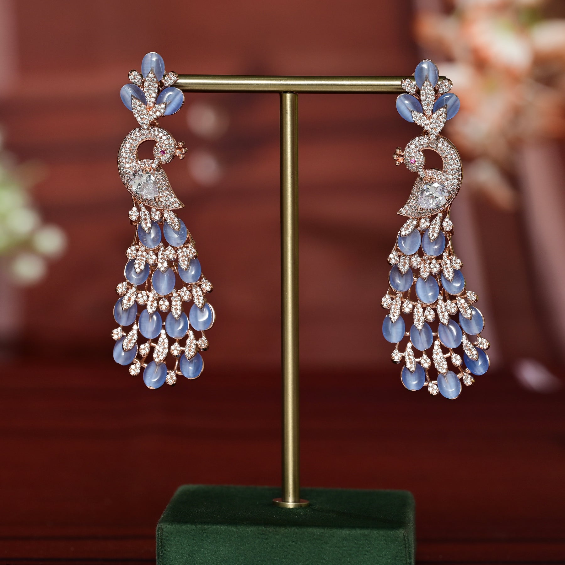 Elevate your jewelry collection with our CZ Rose Gold Earrings. These handcrafted earrings feature sparkling real CZ stones in a rare semi-precious blue color, giving them a unique and luxurious look. The rosegold finish adds a sophisticated touch, perfect for any occasion. Add a touch of elegance to your look with these exclusive earrings.