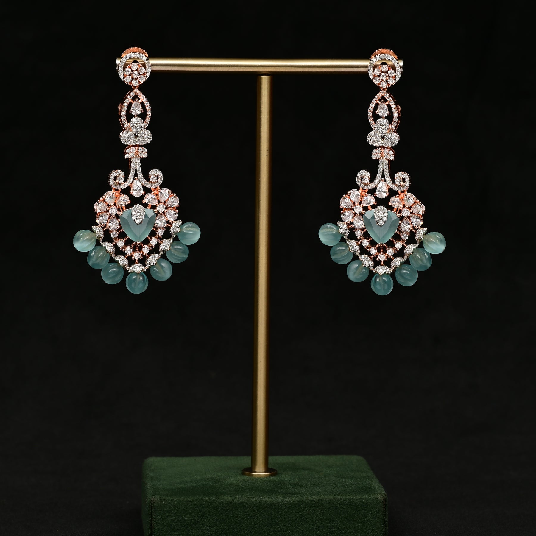 Indulge in elegance with these CZ Rose Gold Earrings. Handmade with real CZ stones in a semi-precious mint color, these exclusive earrings boast a stunning rose gold finish for a diamond-like look. Elevate any outfit with the sophistication and shine of these exquisite earrings.