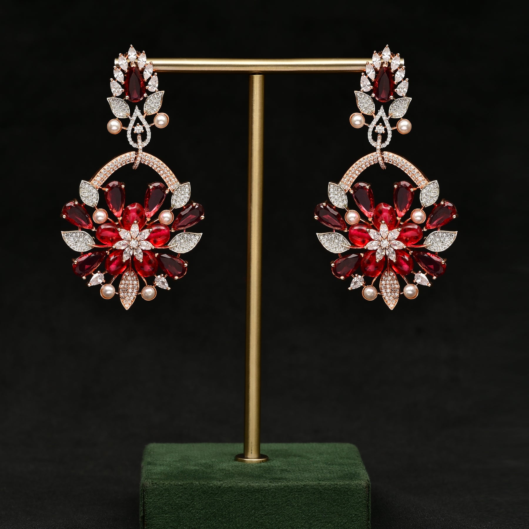Enhance your jewelry collection with our CZ Rose Gold Earrings. Made with real CZ stones and semi-precious ruby stones, these exclusive earrings have a handmade, diamond-like finish. Exude elegance and sophistication with this stunning accessory, perfect for any occasion.