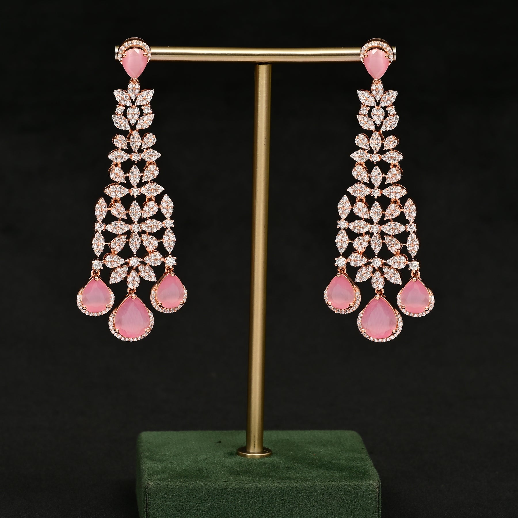 These CZ Rose Gold Earrings bring a touch of elegance and luxury to any outfit. With real CZ stones and semi-precious pink stones, they offer a stunning diamond-like sparkle. Handmade with an exclusive rose gold finish, these earrings are truly unique. Elevate your style with these beautiful and timeless earrings.