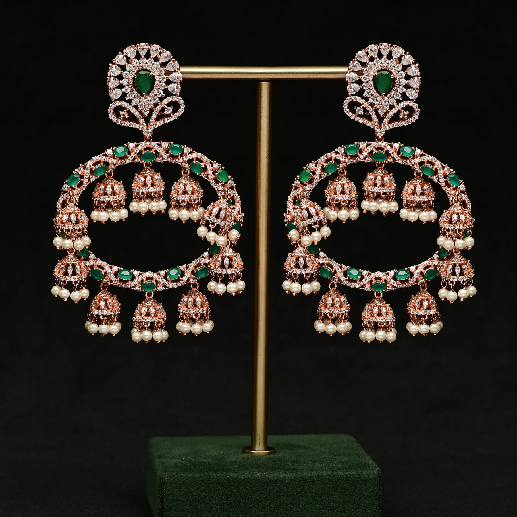 Experience the elegance of our CZ Rose Gold Earrings. Crafted with real CZ stones and semi precious emerald stones, these handmade earrings boast an exclusive rose gold finish for a luxurious diamond look. Perfect for adding a touch of sophistication to any outfit.