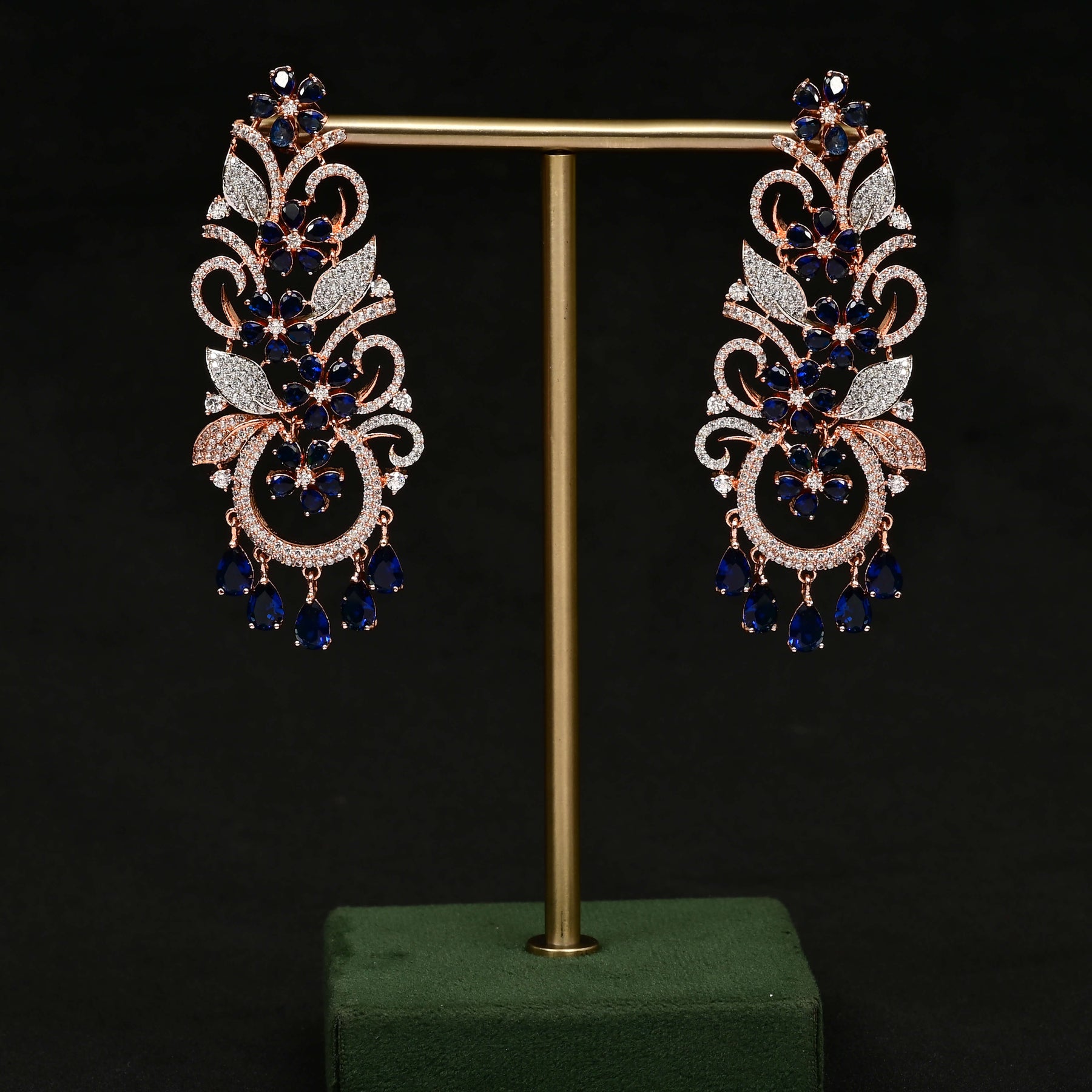 These rose gold-finished earrings feature expertly handcrafted designs that mimic the brilliance of diamonds. Set with genuine cubic zirconia stones, they offer a stunning sparkle and refined elegance, perfect for adding a touch of sophistication to any outfit.