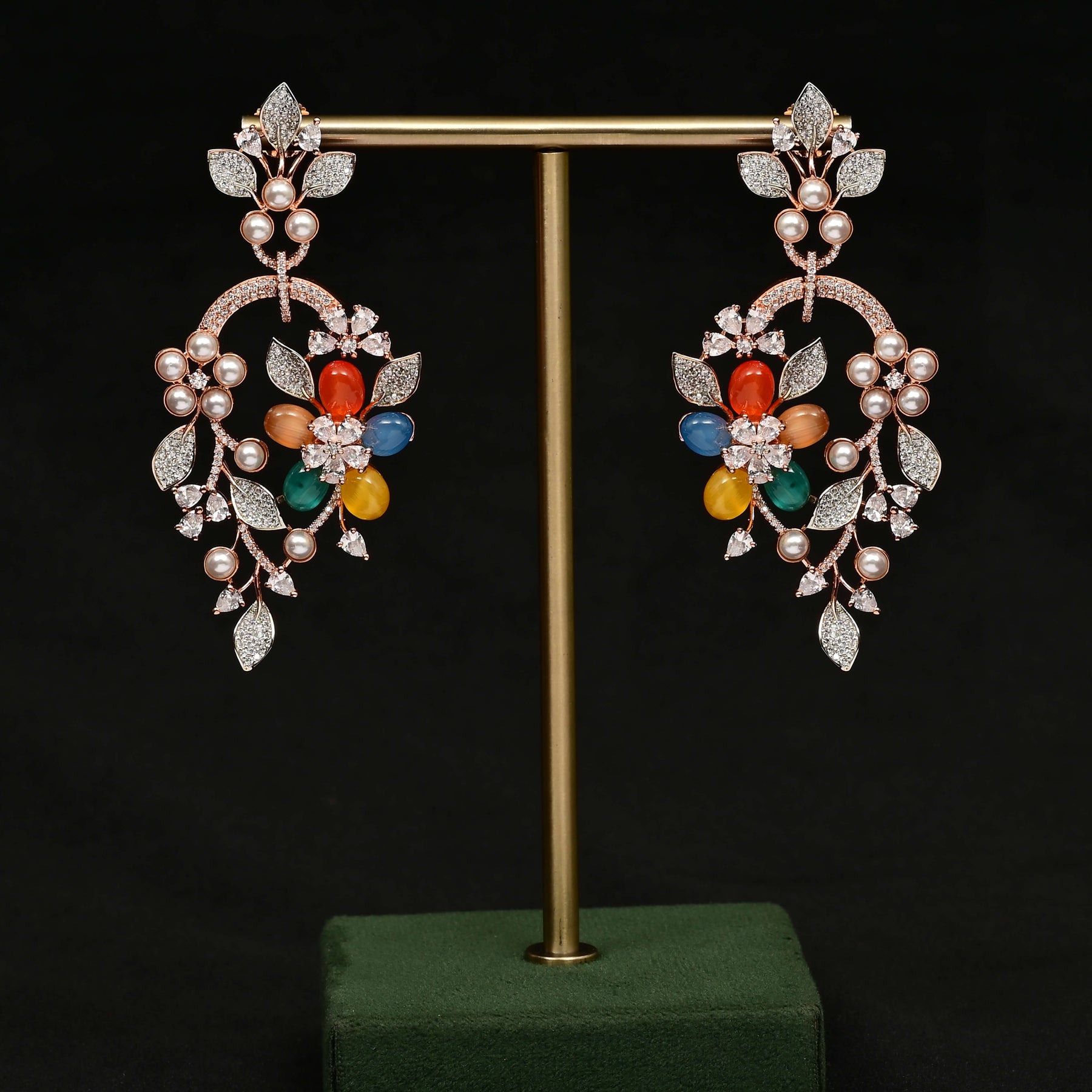 These rose gold-finished earrings feature expertly handcrafted designs that mimic the brilliance of diamonds. Set with genuine cubic zirconia stones, they offer a stunning sparkle and refined elegance, perfect for adding a touch of sophistication to any outfit.