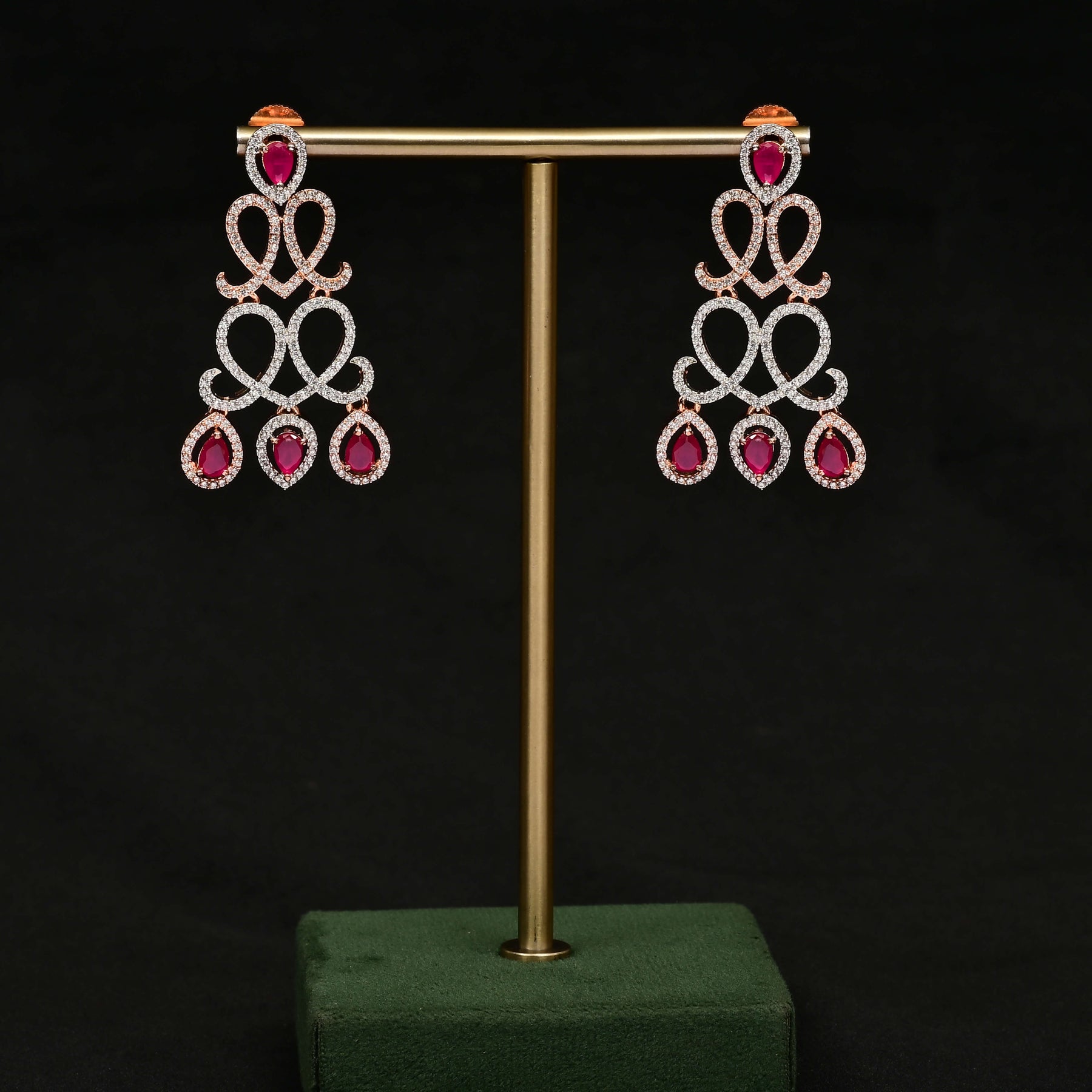 These rose gold-finished earrings feature expertly handcrafted designs that mimic the brilliance of diamonds. Set with genuine cubic zirconia stones, they offer a stunning sparkle and refined elegance. Perfect for adding a touch of sophistication to any outfit, these earrings combine quality craftsmanship with timeless style.