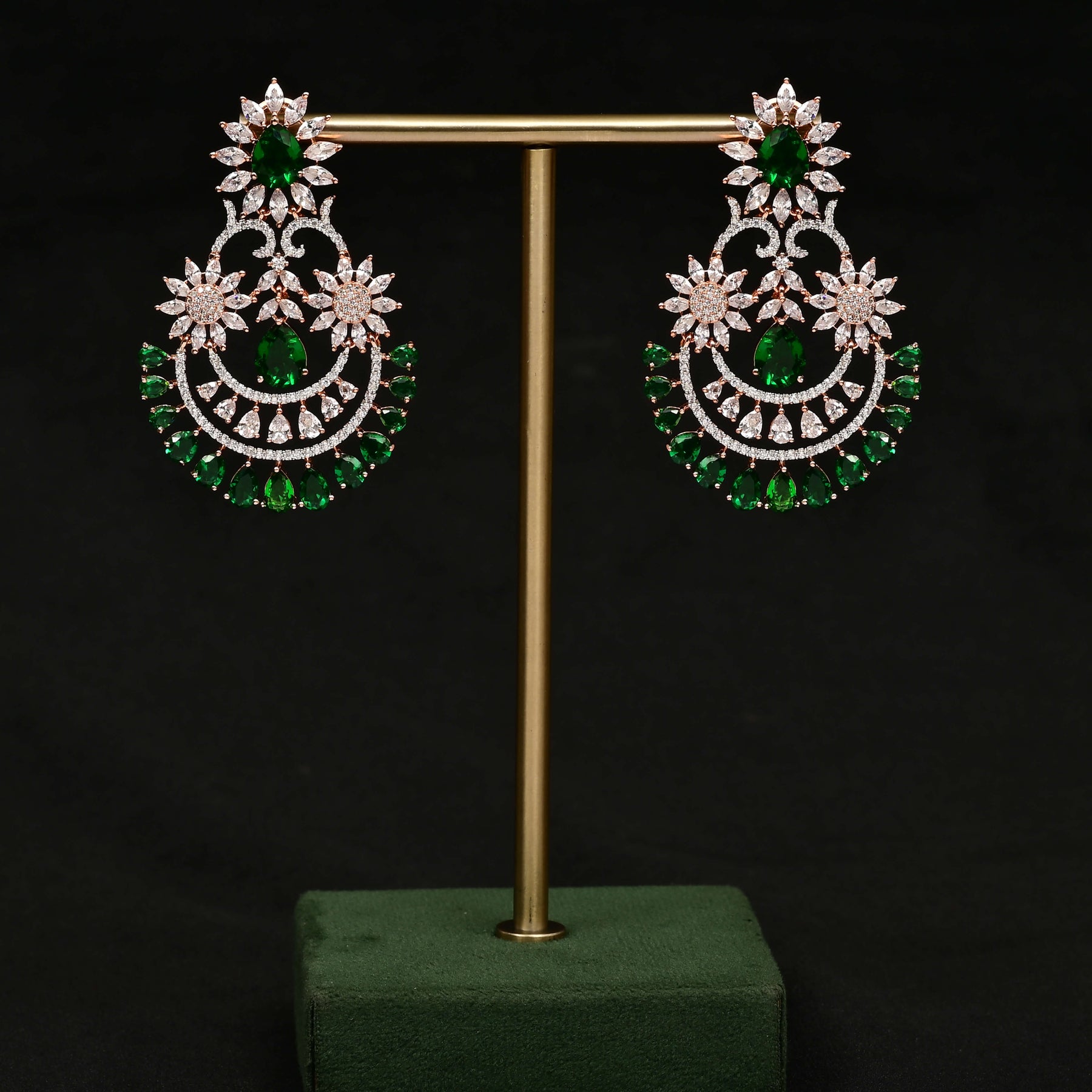 These rose gold-finished earrings feature expertly handcrafted designs that mimic the brilliance of diamonds. Set with genuine cubic zirconia stones, they offer a stunning sparkle and refined elegance. Perfect for adding a touch of sophistication to any outfit, these earrings combine quality craftsmanship with timeless style.