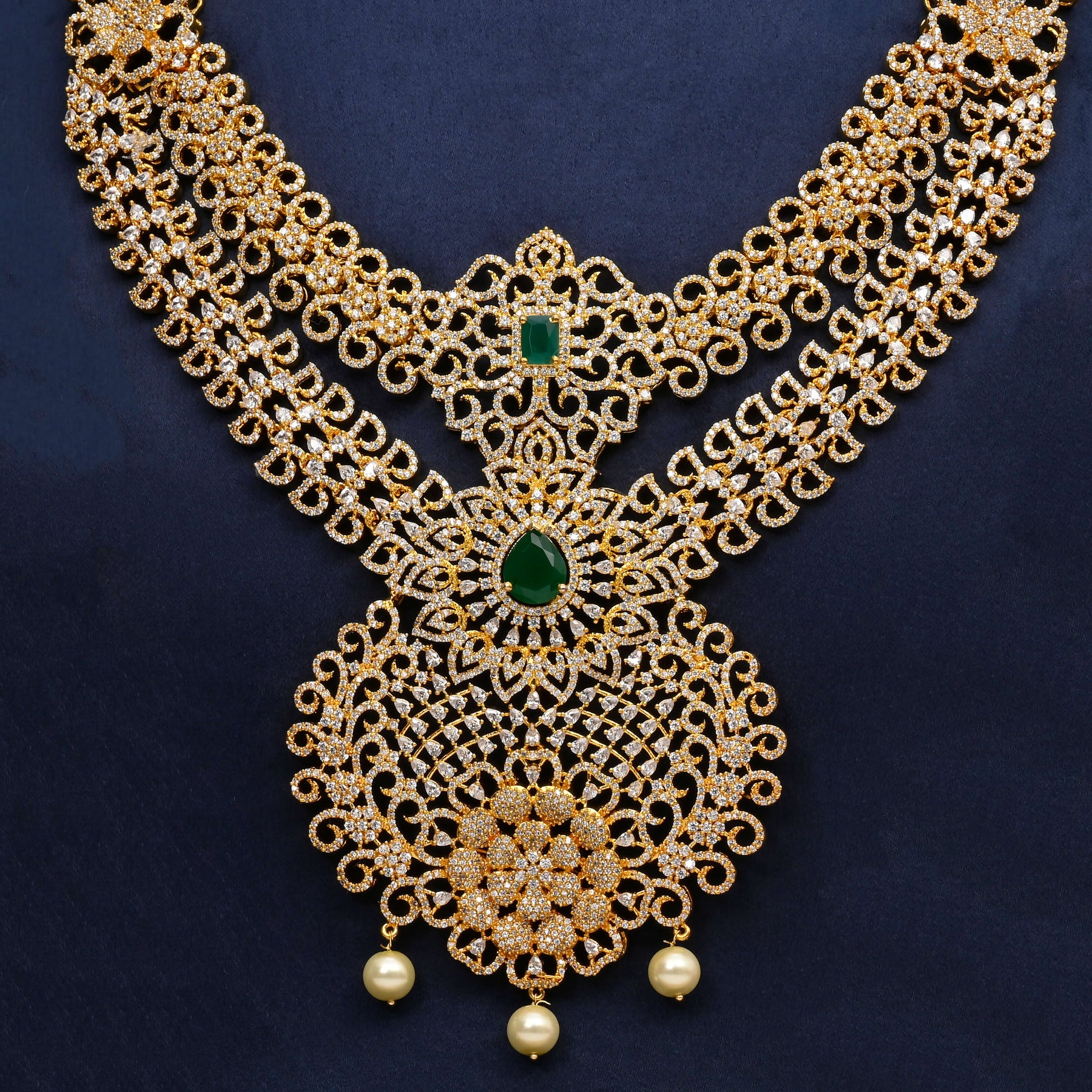 Elevate your jewelry collection with this exquisite CZ Necklace Set, meticulously handcrafted to showcase timeless elegance. Featuring authentic cubic zirconia stones paired with semi-precious emerald accents, this piece delivers sophisticated sparkle with genuine gemstone beauty. The lustrous gold finish complements the radiant stones, creating a refined aesthetic perfect for both special occasions and elevated everyday wear. Each design is uniquely crafted, ensuring you own a one-of-a-kind treasure that reflects discerning taste and artisanal quality.