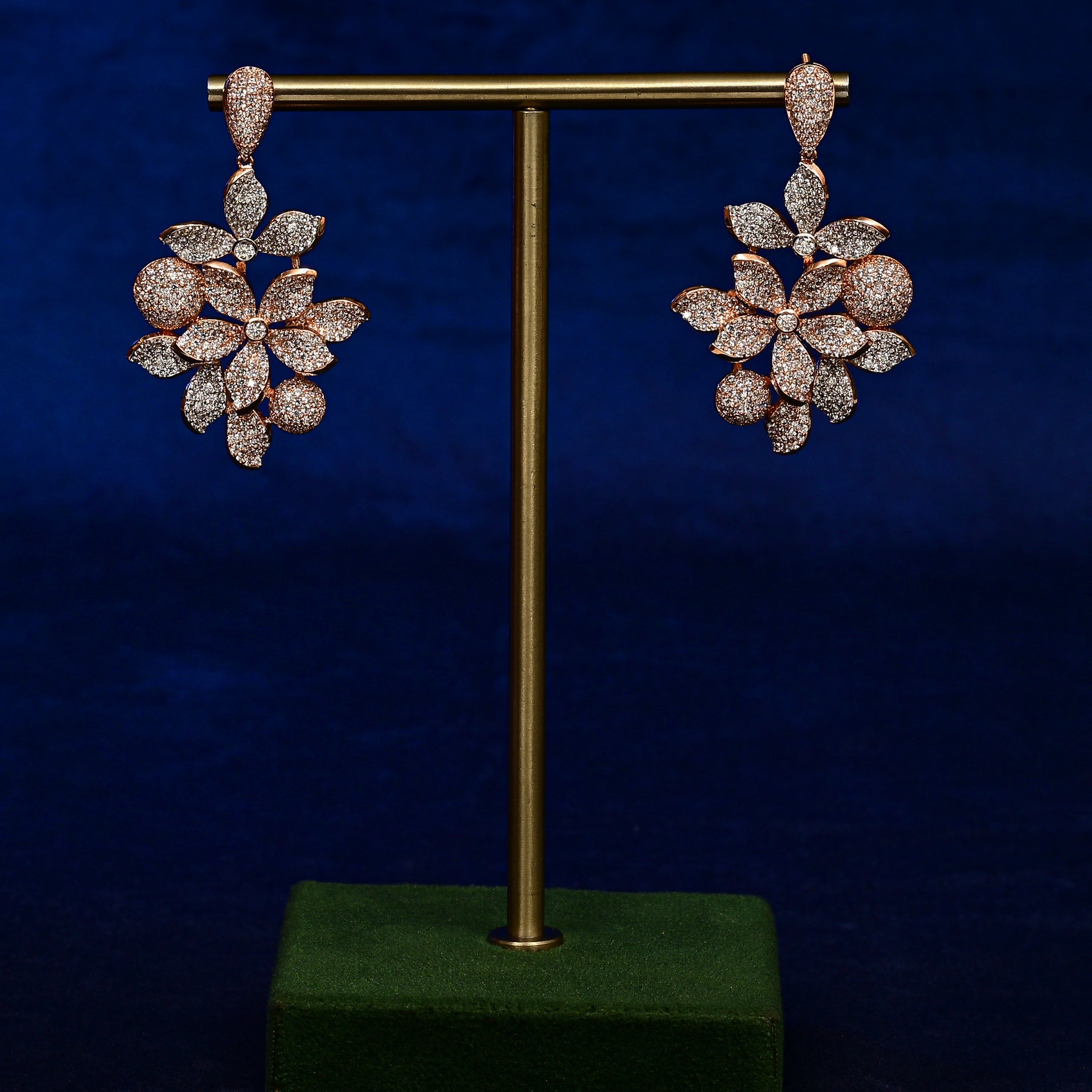 Exquisitely hand-crafted CZ necklace set featuring premium cubic zirconia stones that brilliantly mimic diamonds. Set in a sophisticated rose gold finish, this exclusive design offers unparalleled elegance. Each piece is meticulously created to ensure exceptional quality and distinctive character, making it a remarkable addition to fine jewelry collections.