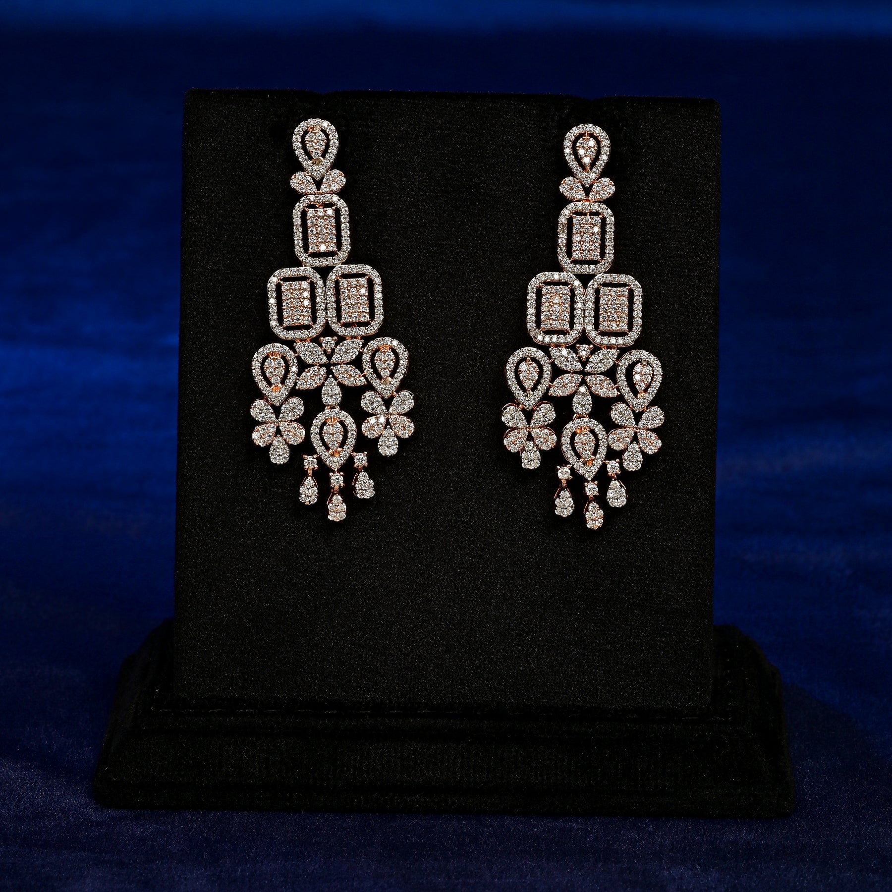Exquisitely hand-crafted necklace set featuring premium cubic zirconia stones that brilliantly mimic diamonds. Set in a sophisticated rose gold finish, this exclusive design offers unparalleled elegance. The meticulous craftsmanship ensures each CZ stone maximizes light reflection for exceptional sparkle and clarity, making this one-of-a-kind piece a standout addition to any fine jewelry collection.