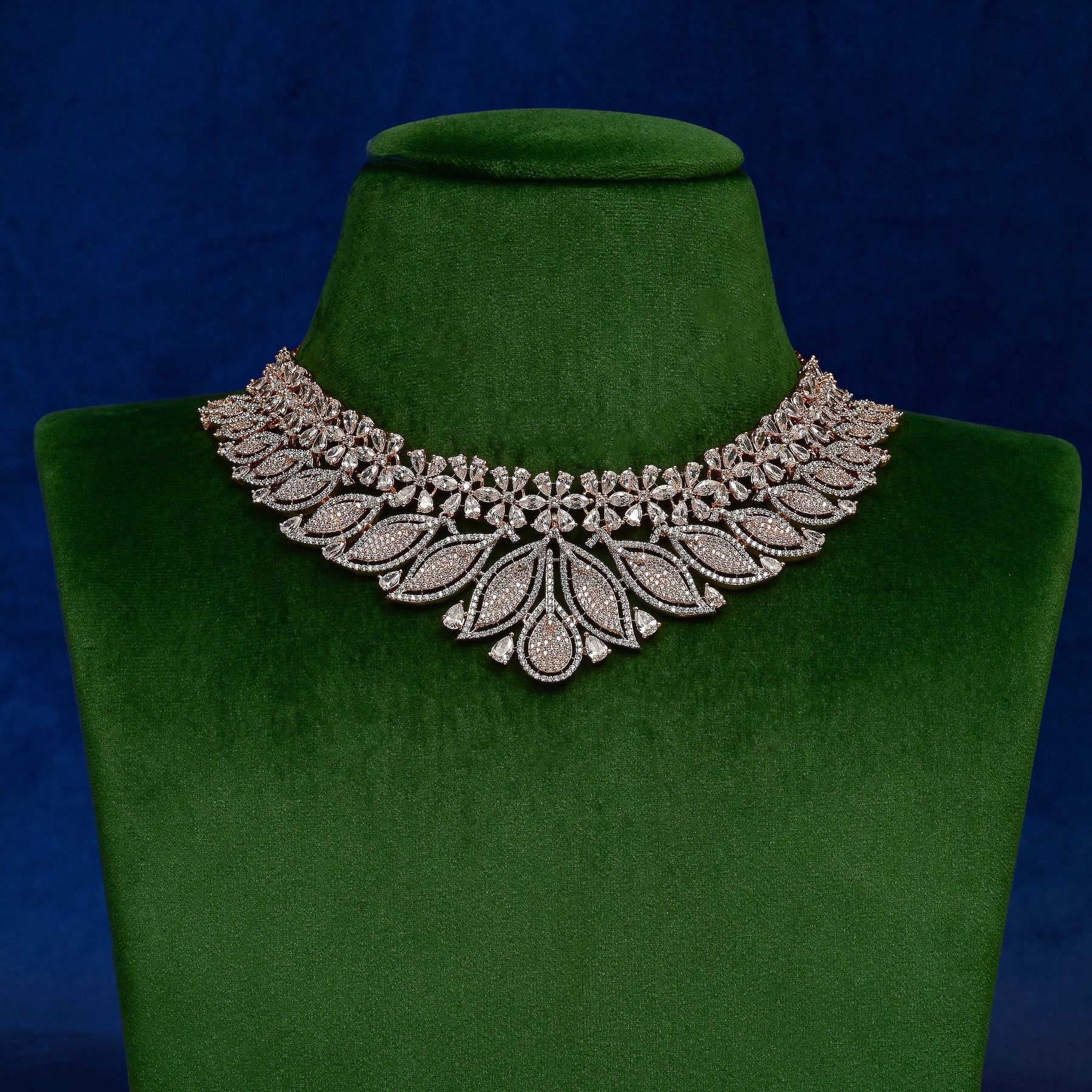 Meticulously hand-crafted, this exclusive CZ necklace set features genuine cubic zirconia stones that brilliantly mimic diamonds. The sophisticated rose gold finish enhances the luxurious appeal of this one-of-a-kind design. Each piece is expertly created to deliver exceptional sparkle and elegance for discerning jewelry connoisseurs.