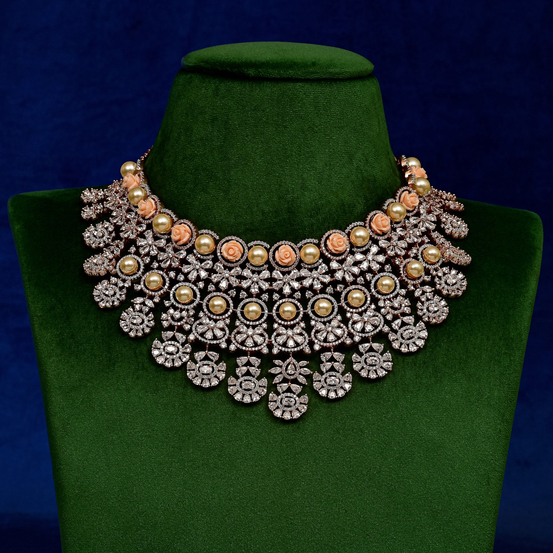 Meticulously hand-crafted, this exclusive CZ necklace set features genuine cubic zirconia stones that brilliantly mimic diamonds. The sophisticated rose gold finish enhances the luxurious appeal of this one-of-a-kind design. Each piece is expertly created to deliver exceptional sparkle and elegance for discerning jewelry connoisseurs.