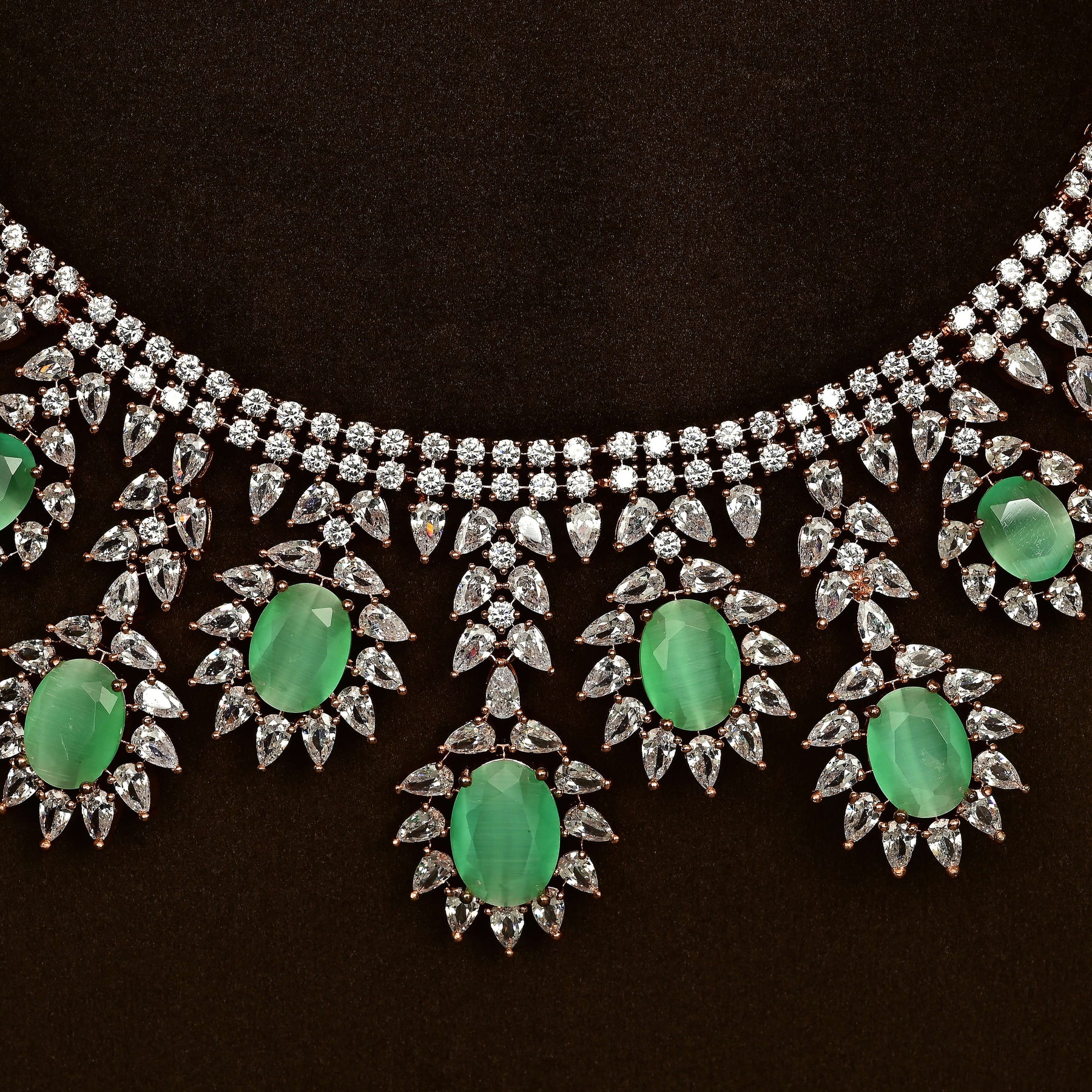 This CZ Necklace Set features expertly handcrafted designs with genuine CZ stones, offering the brilliance of diamonds in a rose gold finish. Each piece is uniquely crafted, ensuring an exclusive and elegant accessory that enhances any ensemble with timeless sophistication.