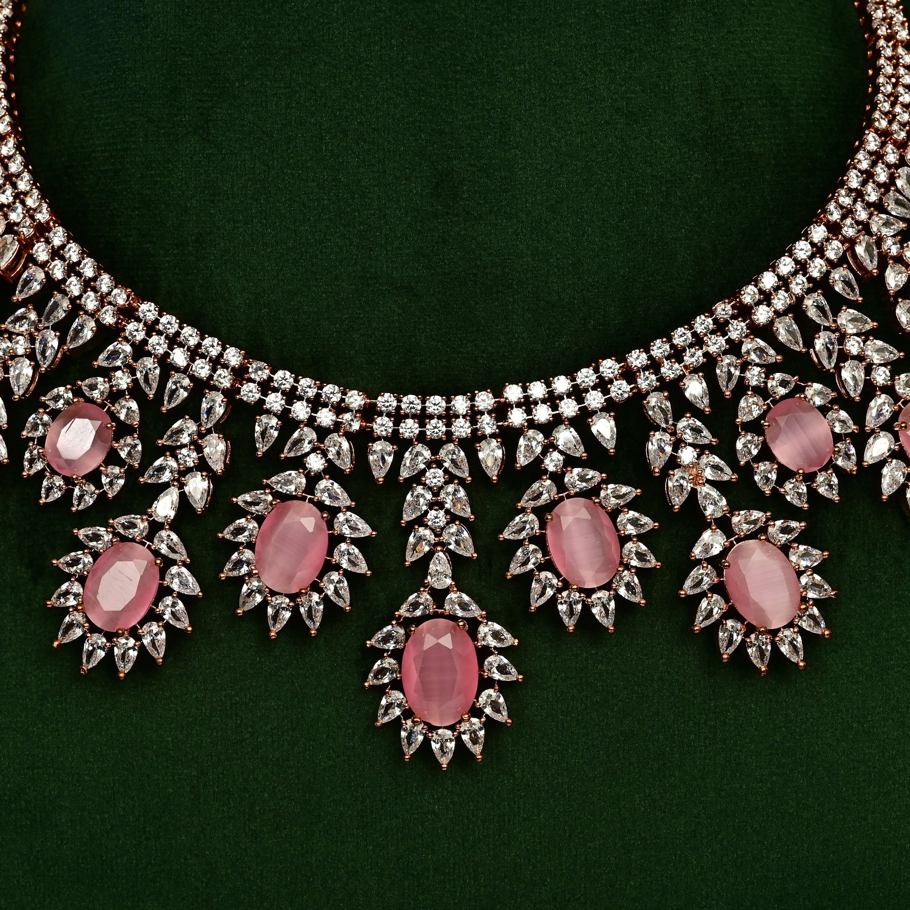 This CZ Necklace Set features expertly handcrafted designs with genuine CZ stones, offering the brilliance of diamonds in a rose gold finish. Each piece is uniquely crafted to provide an exclusive, one-of-a-kind look that combines elegance with lasting quality. Perfect for those seeking sophisticated style with the sparkle of fine jewelry.