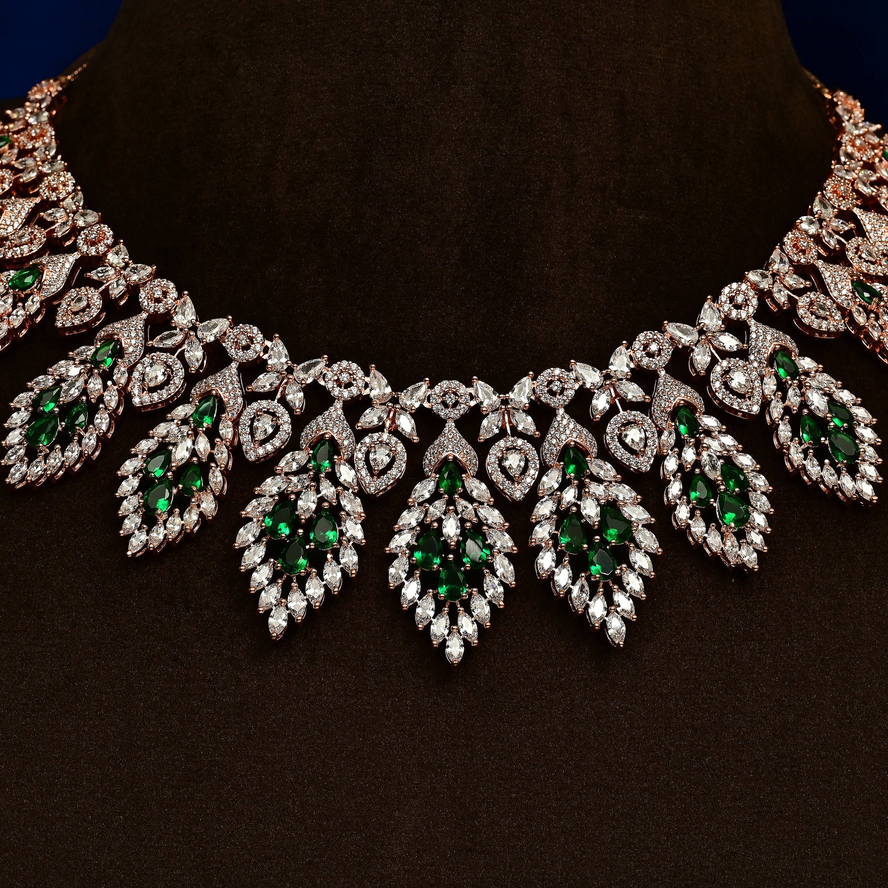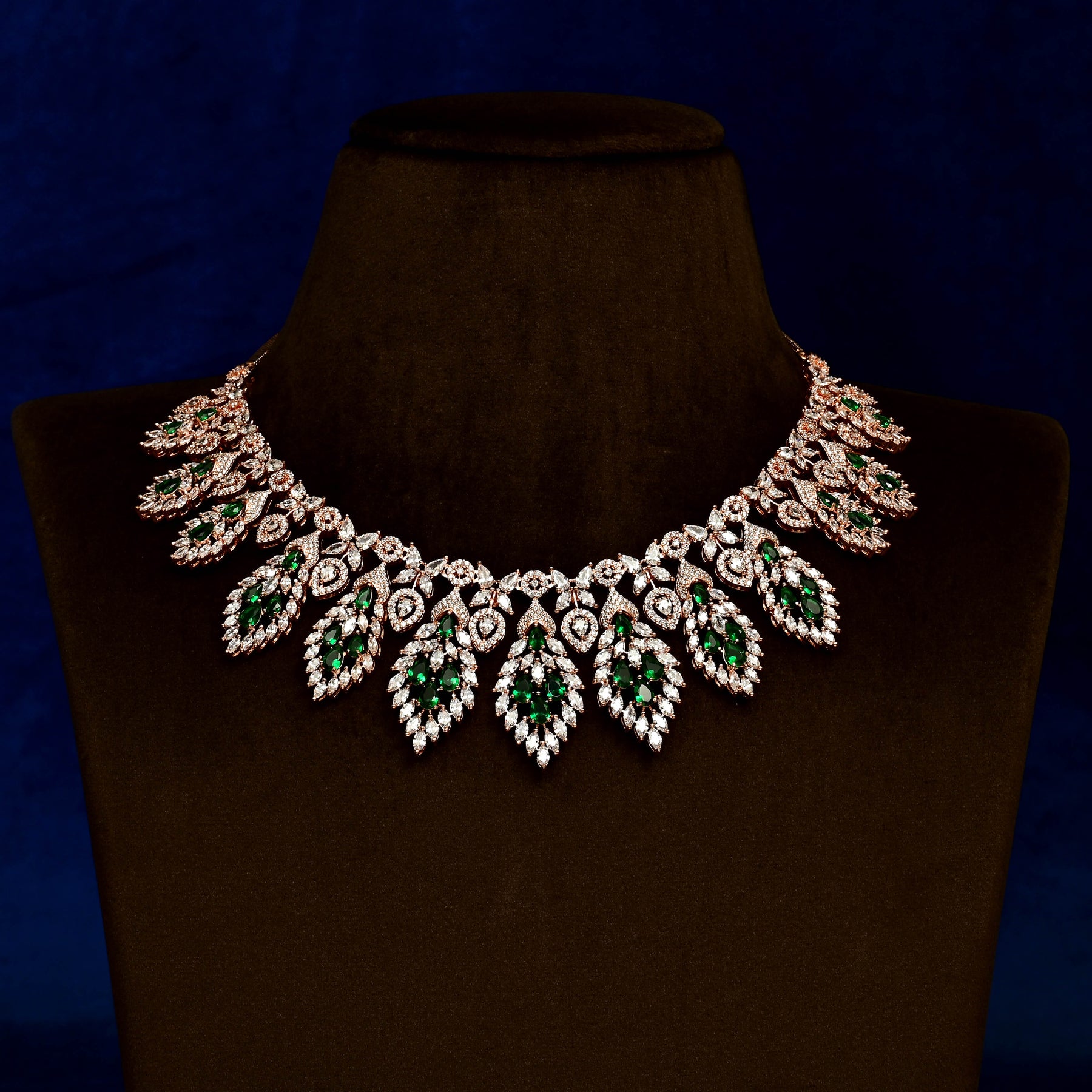 This CZ Necklace Set features expertly handcrafted designs with genuine CZ stones, offering the brilliance of diamonds in a luxurious rose gold finish. Each piece is uniquely crafted to provide an exclusive, one-of-a-kind look that elevates any ensemble with timeless elegance and refined sparkle.
