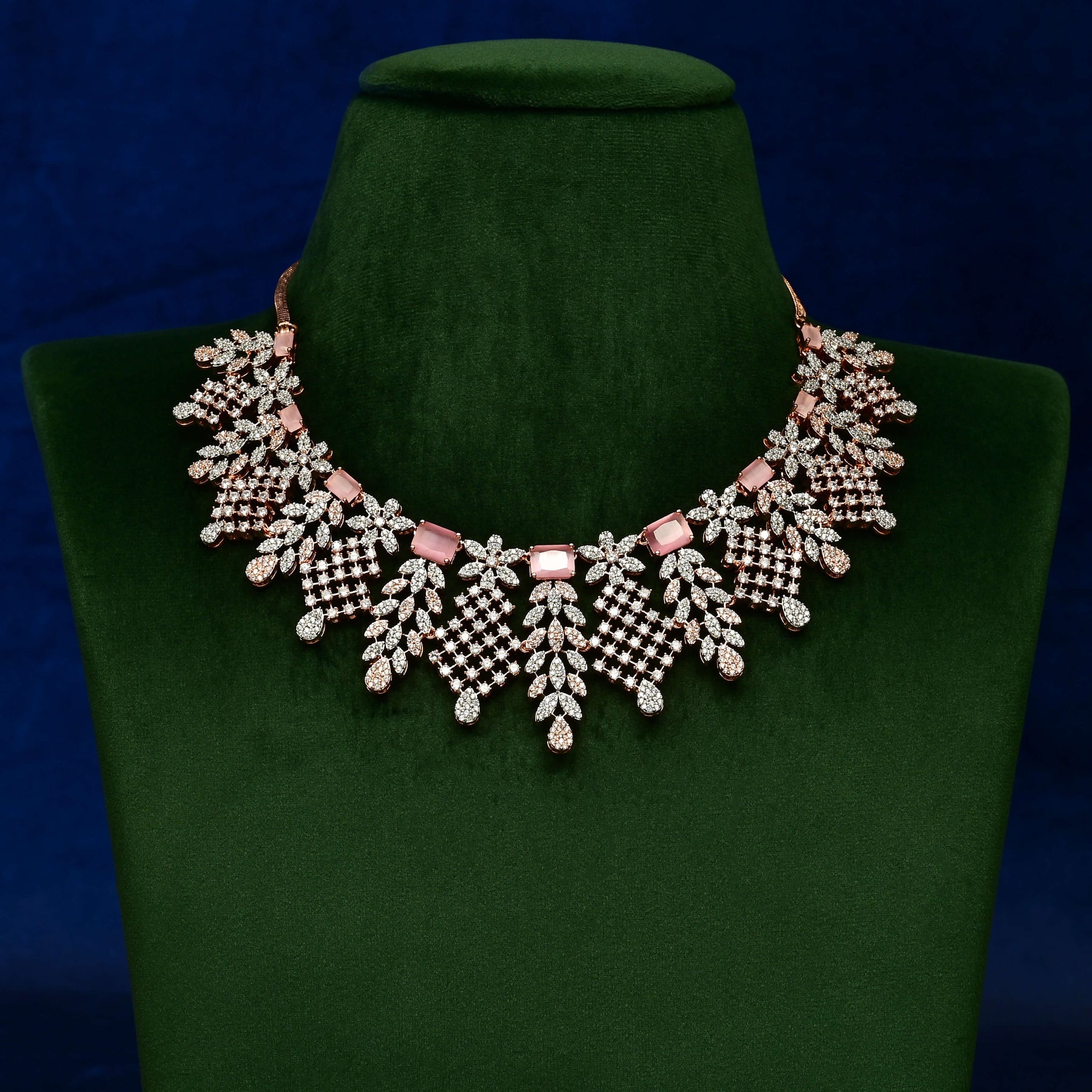 This CZ Necklace Set features expertly handcrafted designs with genuine CZ stones, offering the brilliance and elegance of diamonds in a rose gold finish. Each piece is uniquely crafted, ensuring an exclusive and one-of-a-kind accessory that enhances any ensemble with timeless sophistication.