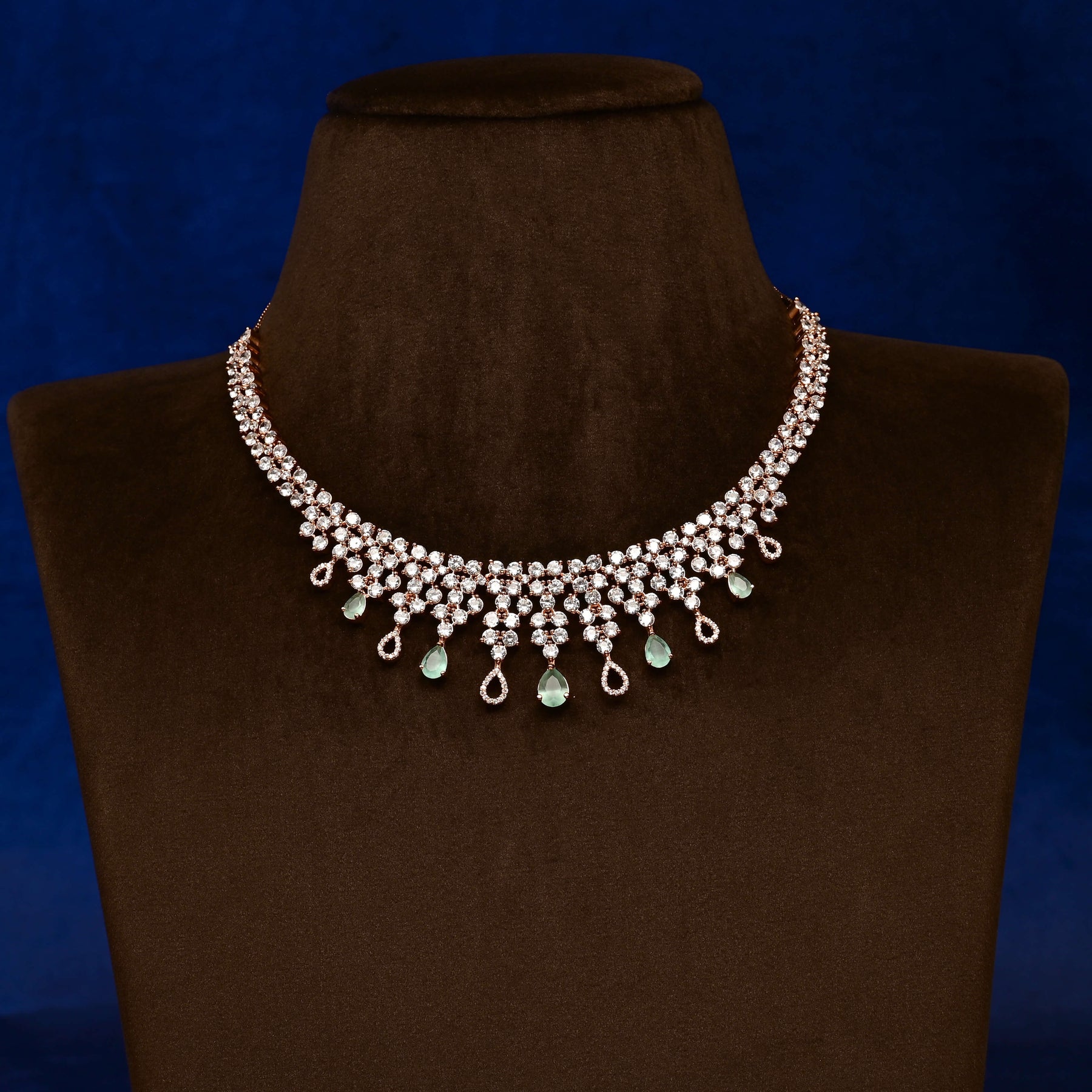 This CZ Necklace Set features expertly handcrafted designs with genuine CZ stones, offering the brilliance of diamonds in a rose gold finish. Each piece is uniquely crafted, ensuring an exclusive and elegant accessory that enhances any ensemble with timeless sophistication.