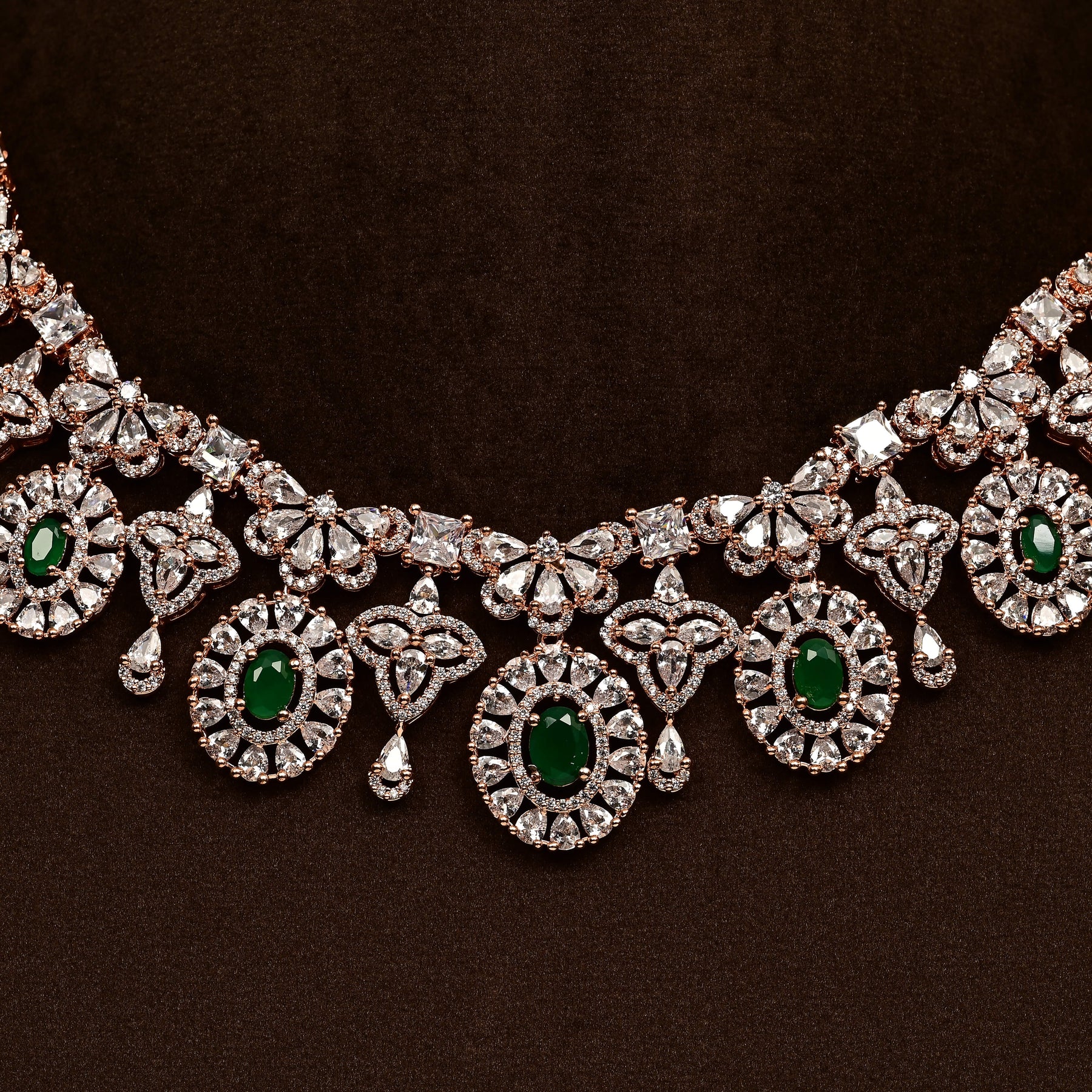This CZ Necklace Set features expertly handcrafted designs with genuine CZ stones, offering the brilliance of diamonds in a luxurious rose gold finish. Each piece is uniquely crafted to provide an exclusive, one-of-a-kind look that elevates any ensemble with timeless elegance and refined sparkle. Perfect for those seeking sophisticated style with exceptional craftsmanship.