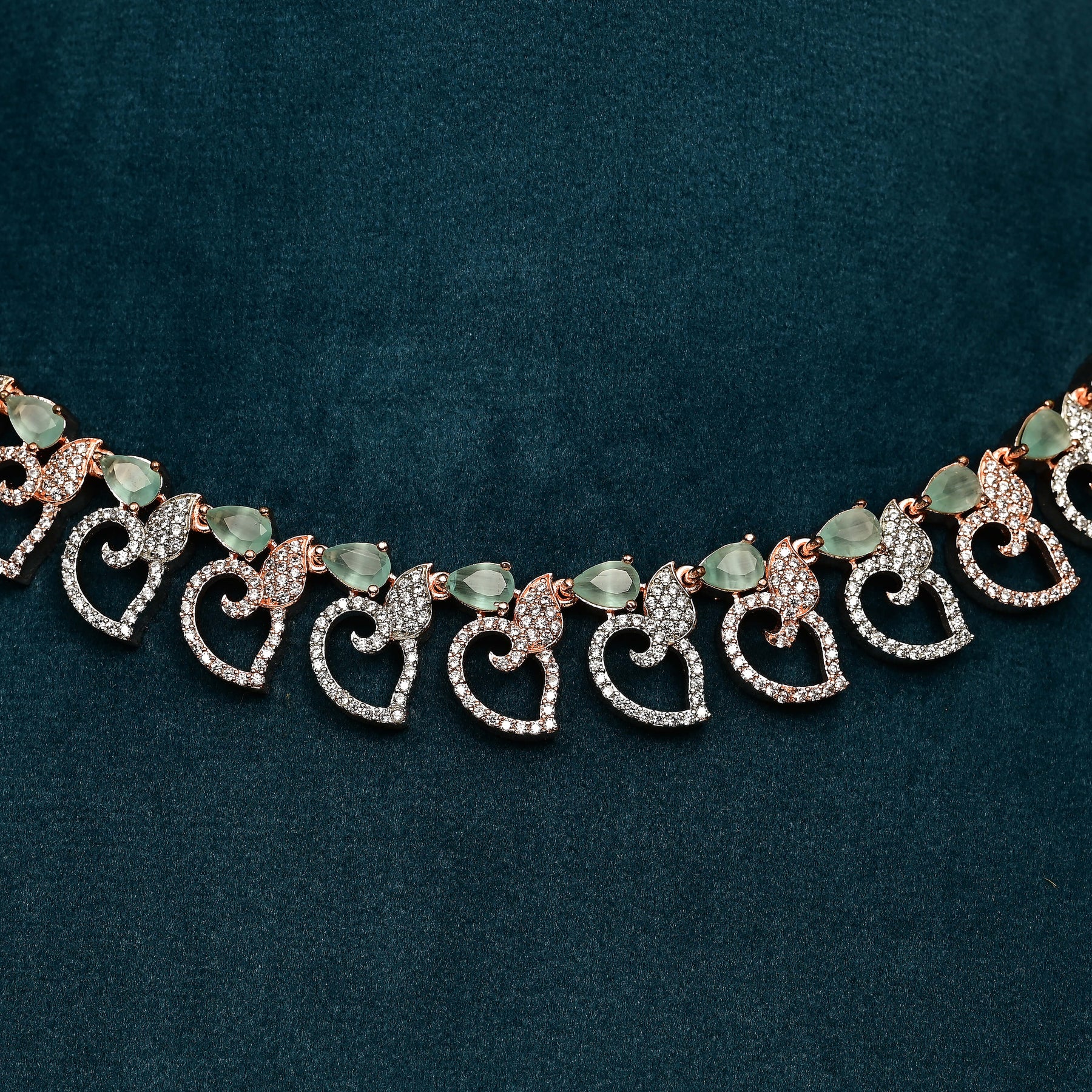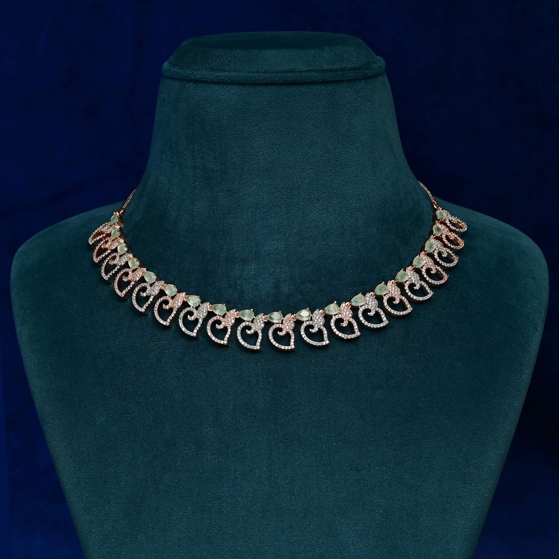 This exquisite CZ Necklace Set features genuine cubic zirconia stones meticulously handcrafted with a rose gold finish. Each piece is uniquely designed, offering a one-of-a-kind accessory that combines elegance with expert craftsmanship. Perfect for adding a refined touch to any ensemble.