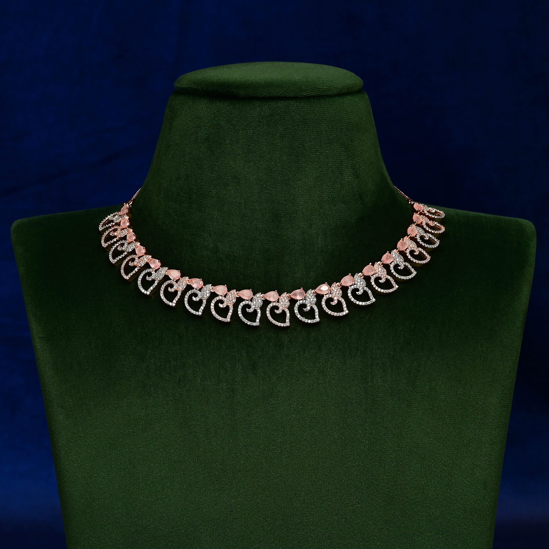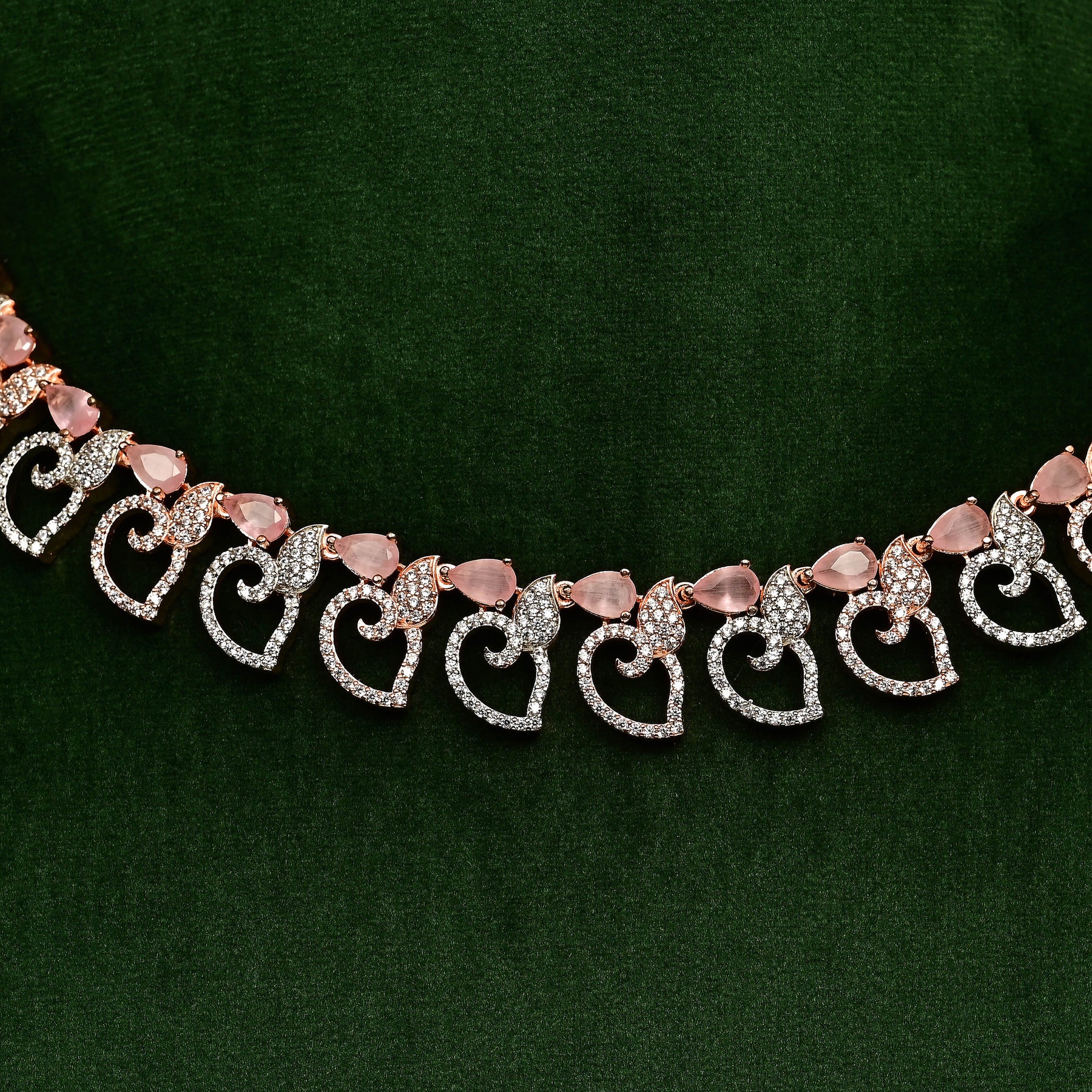 This exquisite CZ Necklace Set features genuine cubic zirconia stones meticulously handcrafted with a rose gold finish. Each piece is uniquely designed, offering a one-of-a-kind accessory that combines elegance with expert craftsmanship. Perfect for adding a refined touch to any ensemble.