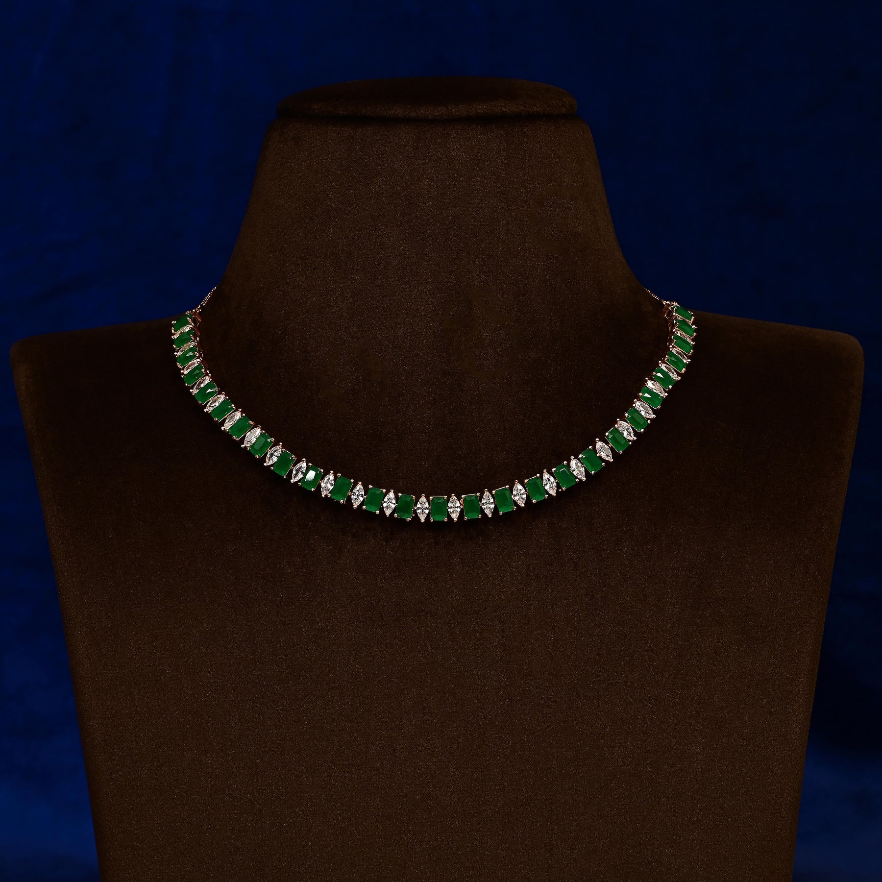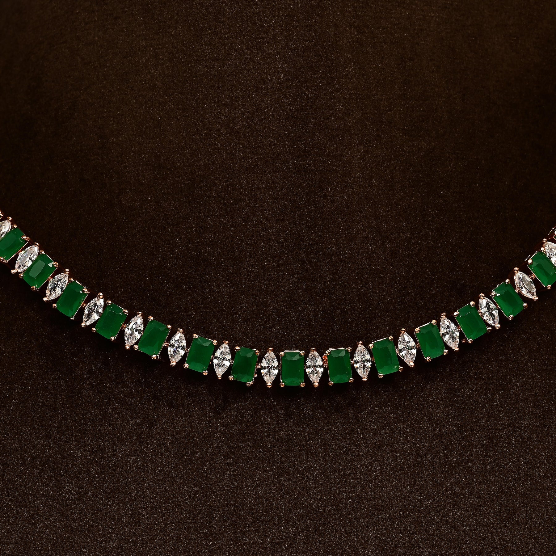 This CZ Necklace Set features genuine cubic zirconia stones, meticulously handcrafted with a rose gold finish. Each piece is uniquely designed, offering an exclusive accessory that combines elegance with expert craftsmanship. Perfect for adding a refined touch to any ensemble.
