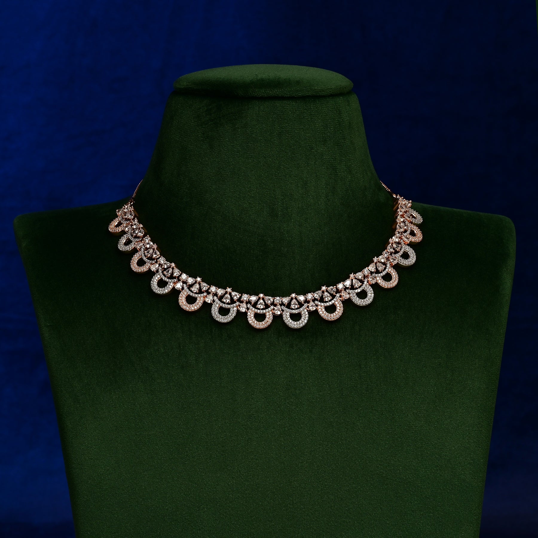 Meticulously hand-crafted, this exclusive CZ necklace set features genuine cubic zirconia stones that brilliantly mimic diamonds. The sophisticated rose gold finish enhances the luxurious appeal of this one-of-a-kind design. Each piece is expertly created to deliver exceptional sparkle and elegance for discerning jewelry connoisseurs.