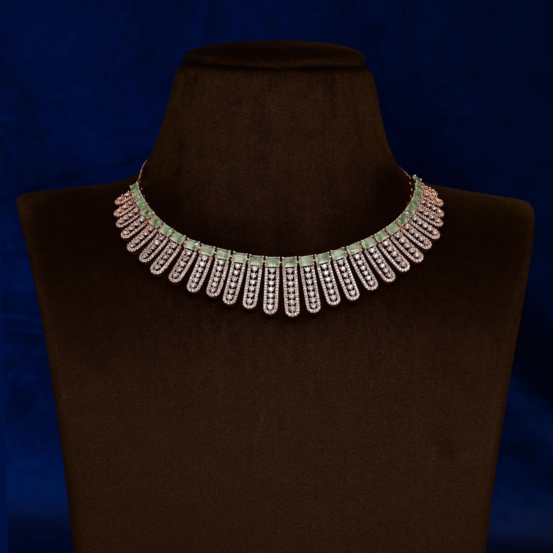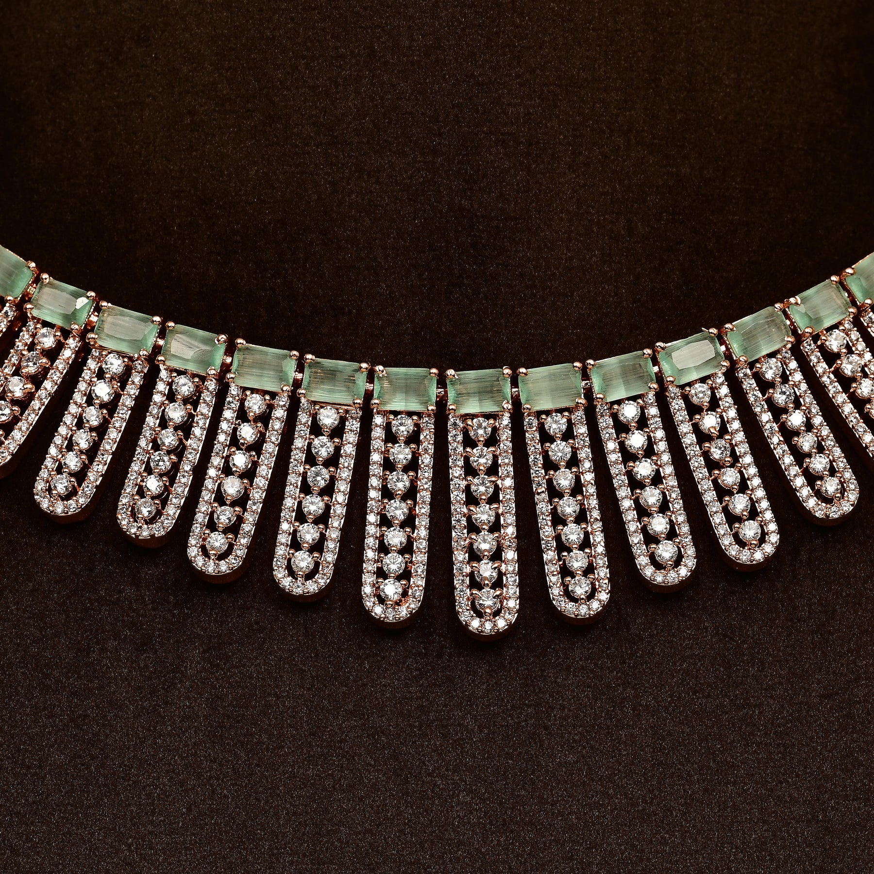 This exquisite CZ Necklace Set features genuine cubic zirconia stones meticulously handcrafted with a rose gold finish. Each piece is uniquely designed, offering a one-of-a-kind accessory that combines elegance with expert craftsmanship. Perfect for adding a refined touch to any ensemble.