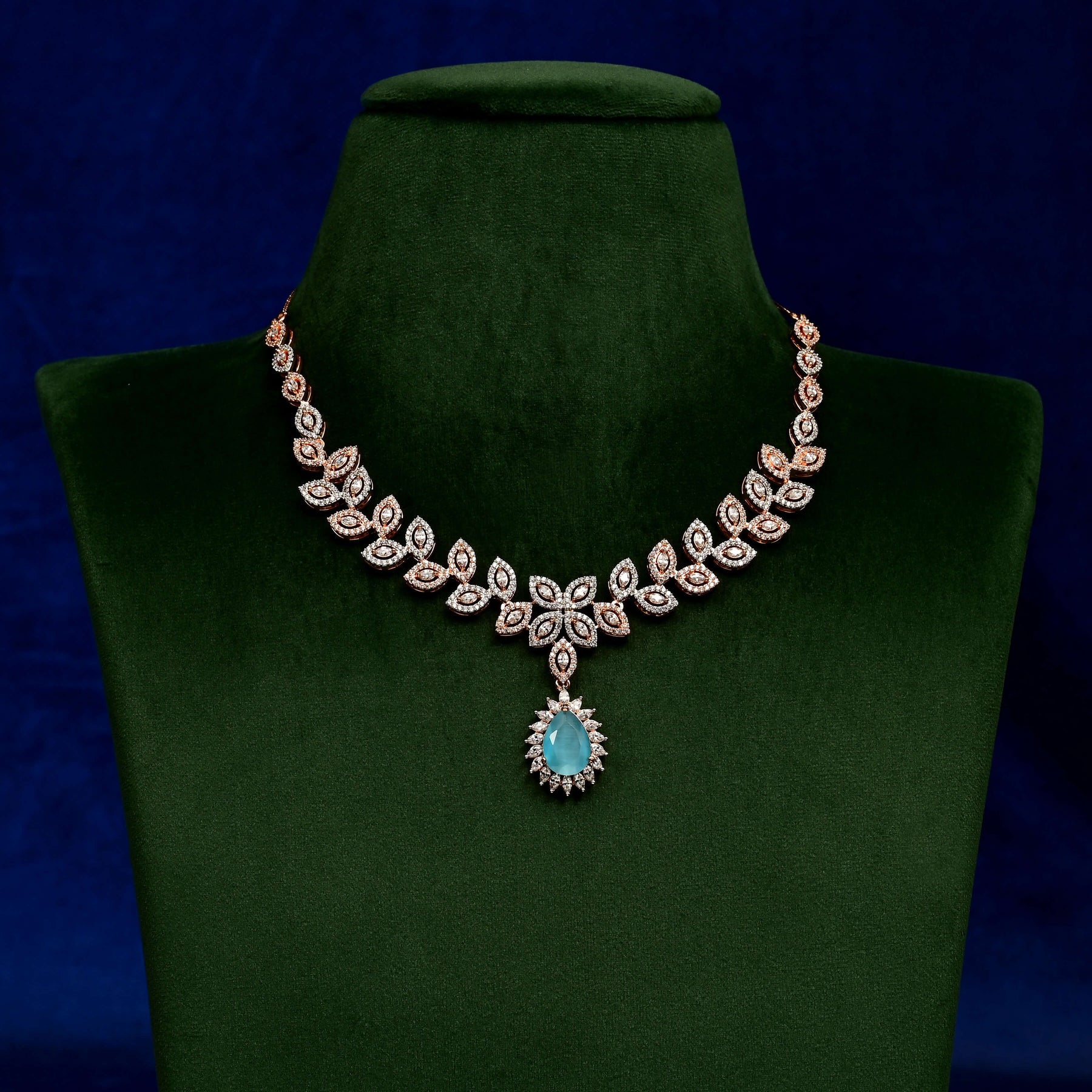 This CZ Necklace Set features genuine cubic zirconia stones meticulously handcrafted with a rose gold finish. Each piece is uniquely designed, offering an exclusive accessory that combines elegance with expert craftsmanship. Perfect for adding a refined touch to any ensemble.