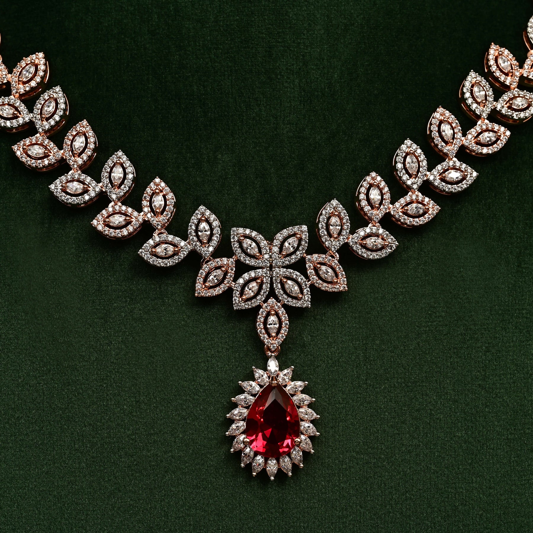 This exquisite CZ Necklace Set features genuine cubic zirconia stones meticulously handcrafted with a rose gold finish. Each piece is uniquely designed, offering a one-of-a-kind accessory that combines elegance with expert craftsmanship. Perfect for adding a refined touch to any ensemble.
