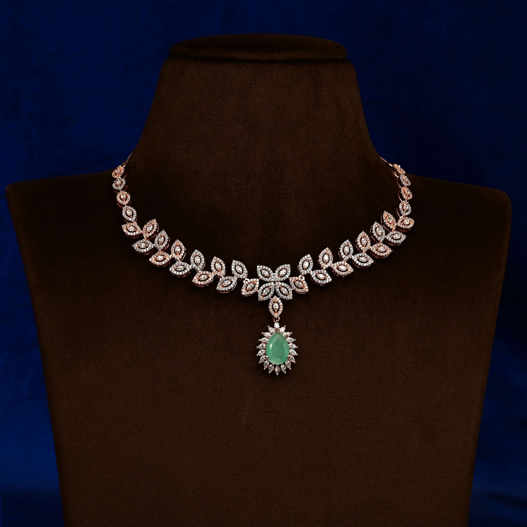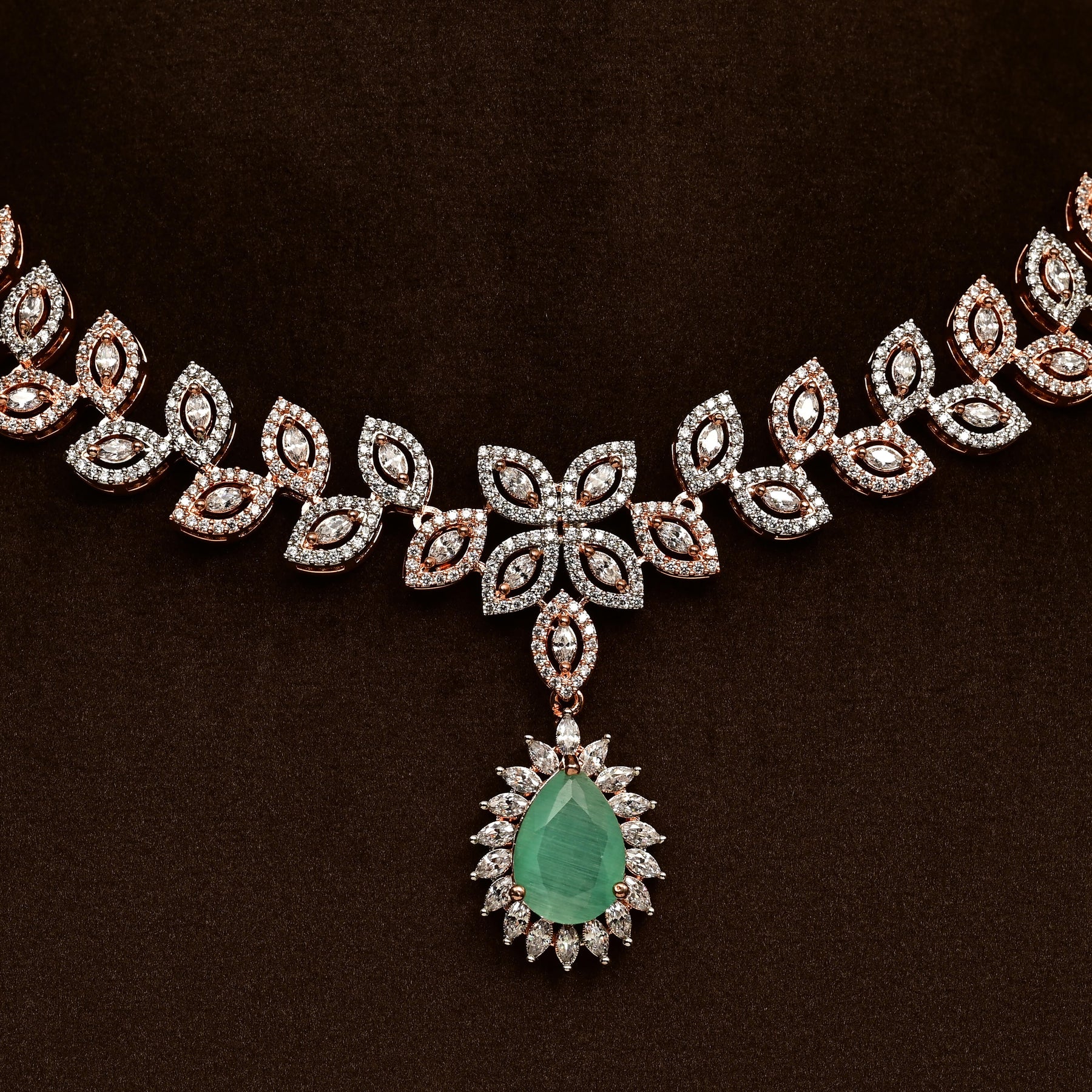 This exquisite CZ Necklace Set features genuine cubic zirconia stones, meticulously handcrafted with a luxurious rose gold finish. Each piece is uniquely designed, offering a one-of-a-kind accessory that combines elegance with expert craftsmanship. Perfect for adding a refined touch to any ensemble.